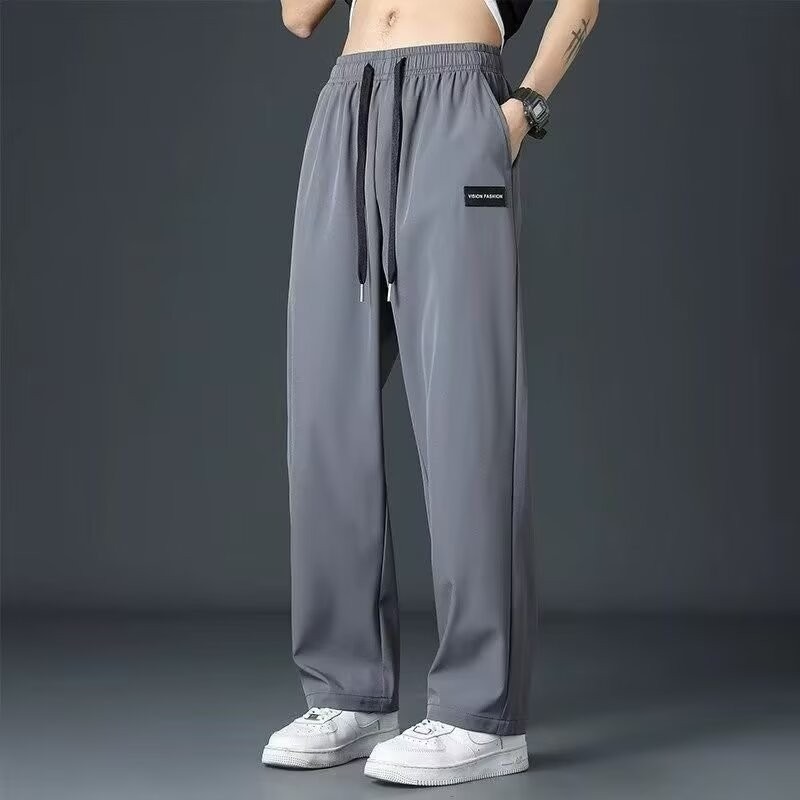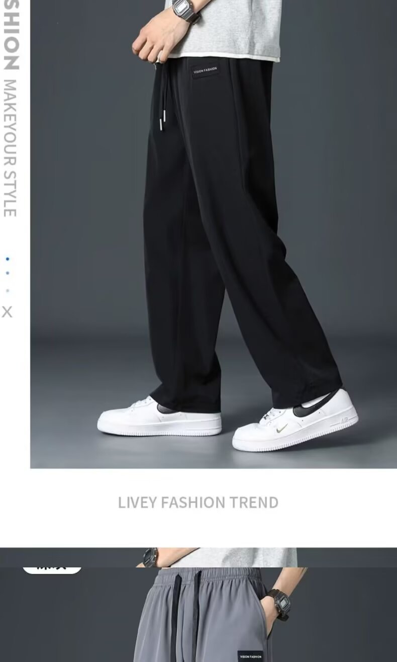 여름 아이스 실크 얇은 바지 남자 플러스 사이즈 스트레이트 바지 바지 느슨한 자른 바지 학생 여름 넓은 다리 캐주얼 바지스토어 가기