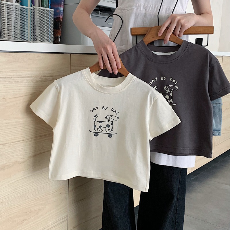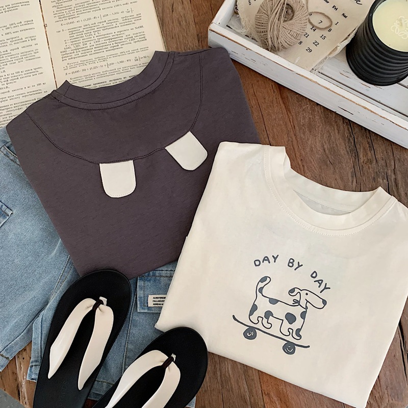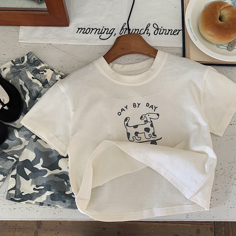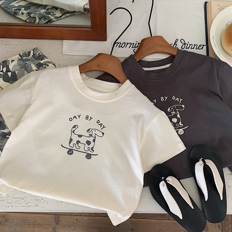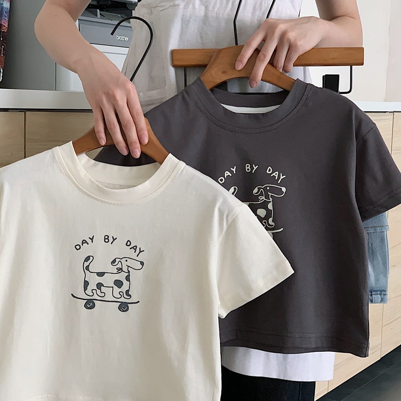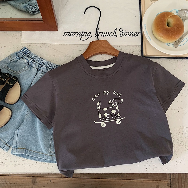 보라아동복 2025 소년 · 어린이를위한 여름 새 도착 한국식 단순 캐주얼 어린이 반팔 티셔츠스토어 가기