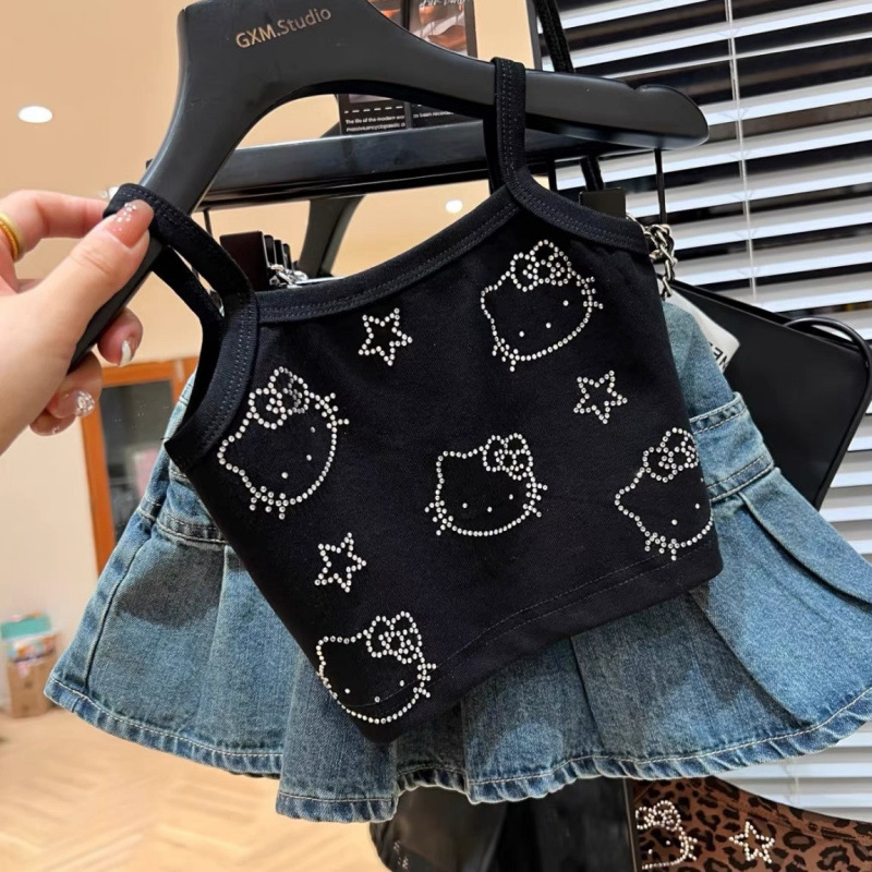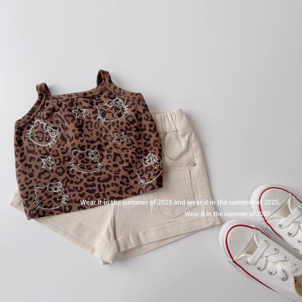 여아 달콤하고 매운 스타일의 레오파드 프린트 조끼 베이비 핫 다이아몬드 짧은 슬림핏 외국 스타일 아동용 백리스 캐미솔 탑