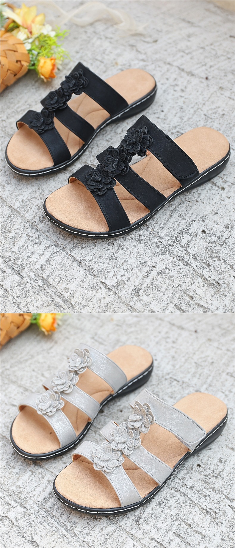 국경을 넘나드는 플러스 사이즈 여름 새 스타일 샌들, 꽃무늬 오픈 토 슬리퍼, 여성용 준비된 비치 슬리퍼