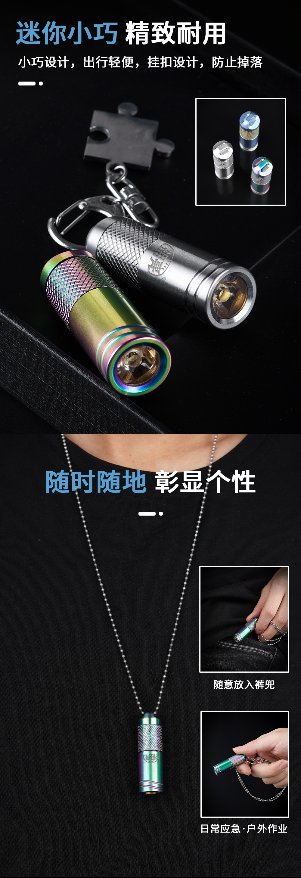 EDC 티타늄 합금 유형-C 충전 야외 조명 작은 램프 R18 미니 휴대용 키 체인 LED 손전등 도매스토어 가기
