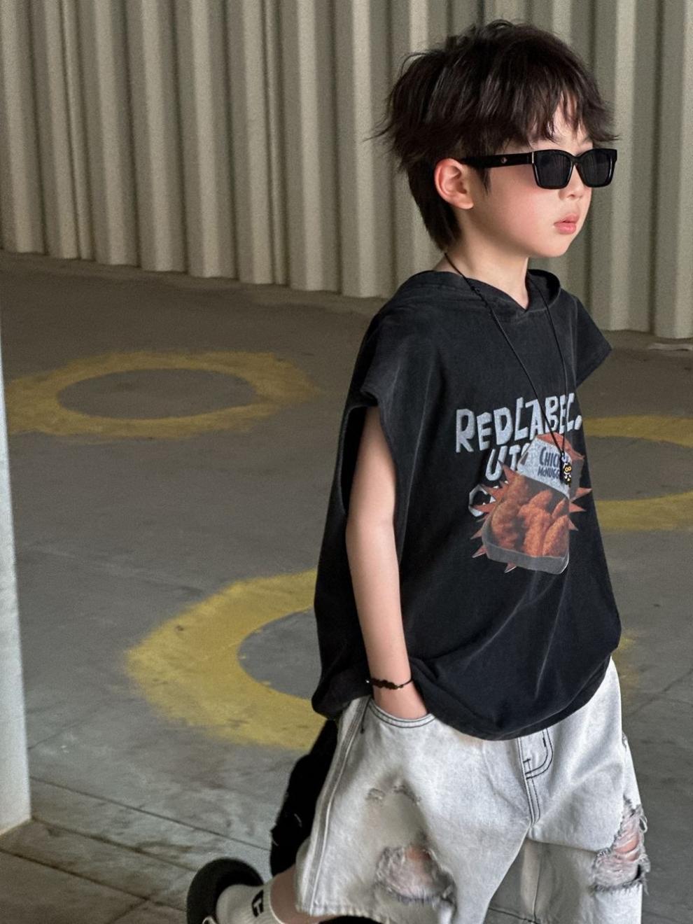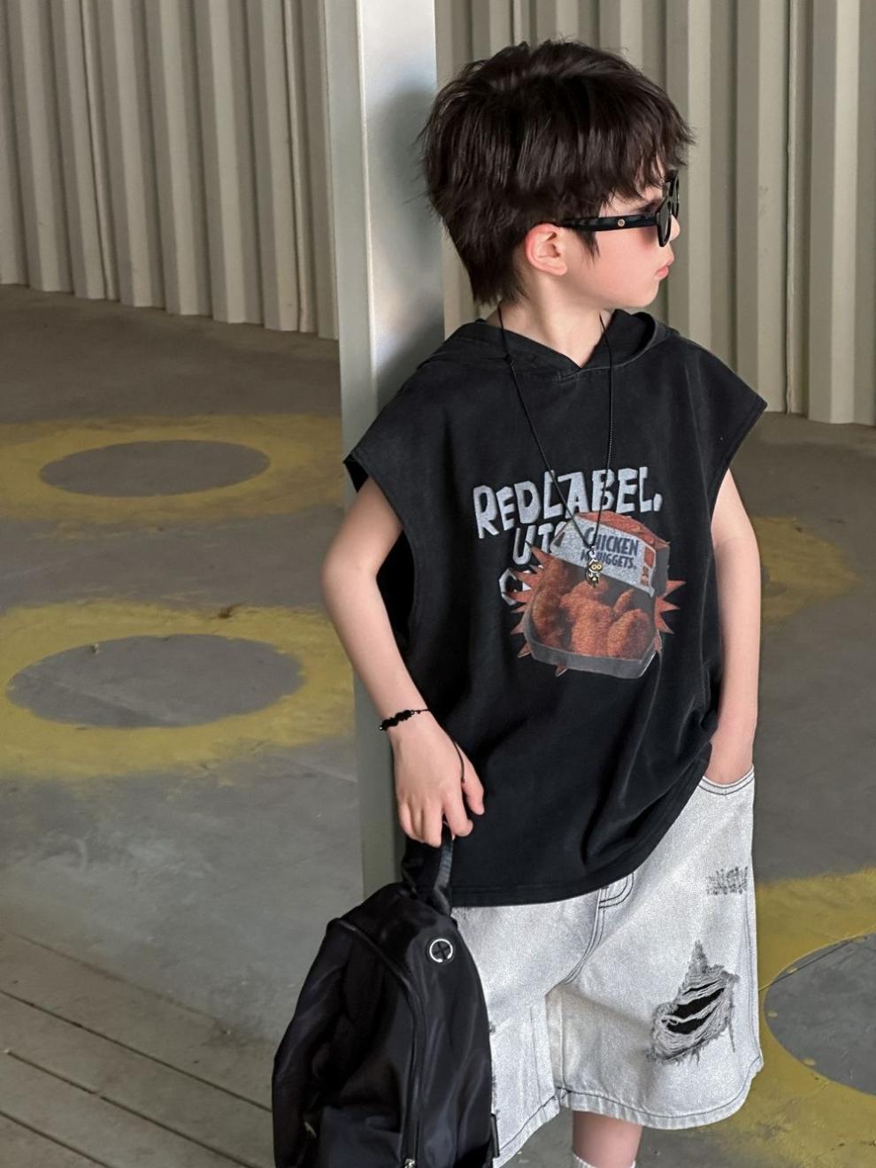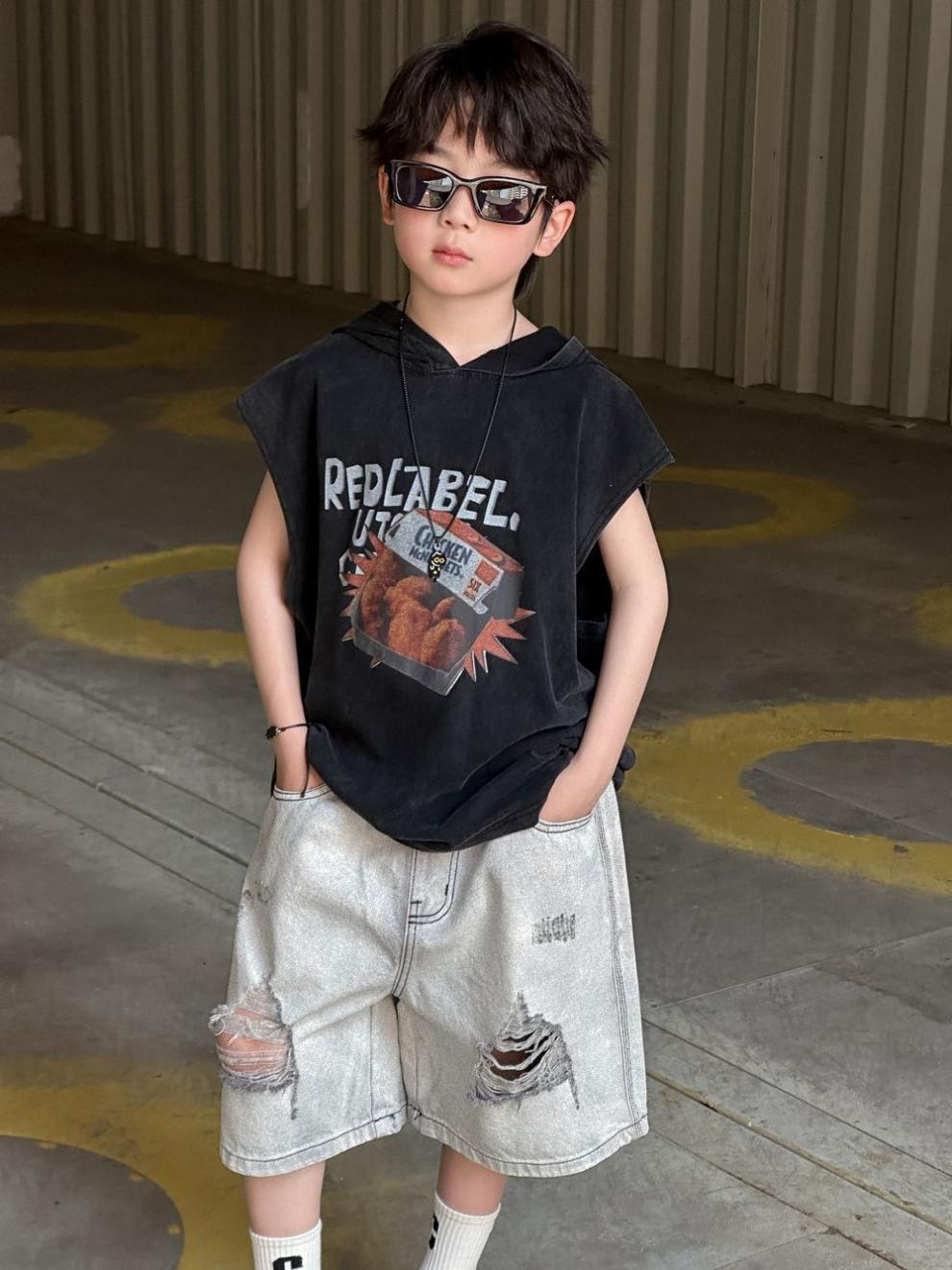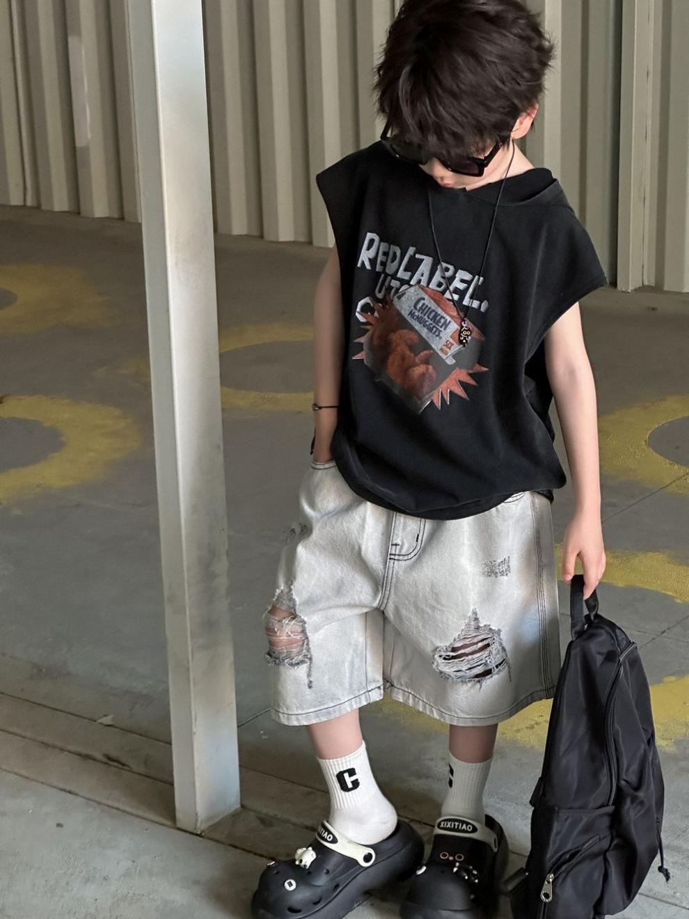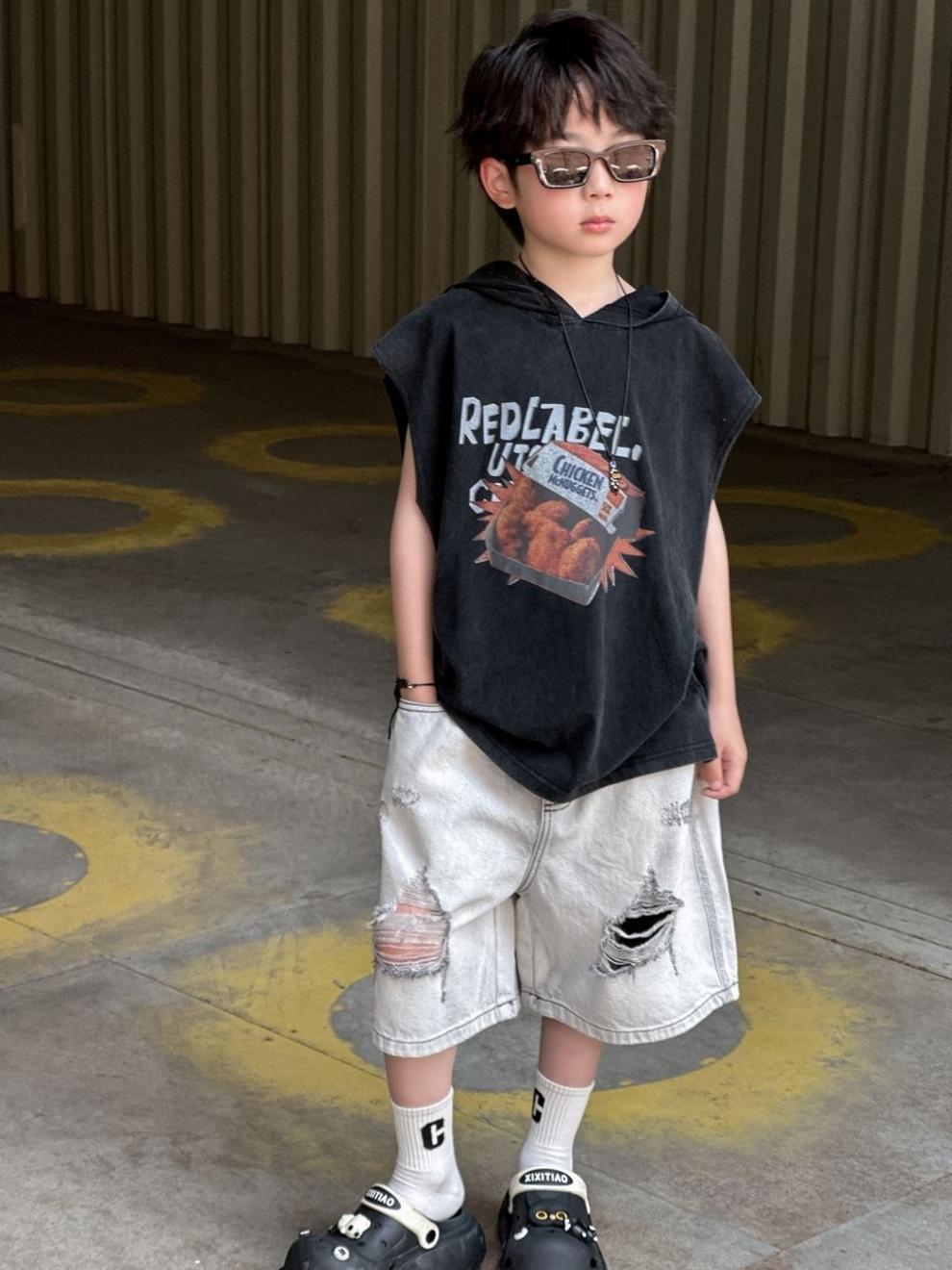 소년 반바지 2025 여름 새로운 어린이 찢어진 데님 반바지 데님 중간 바지 소년 5스토어 가기