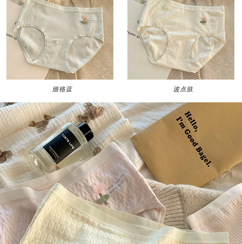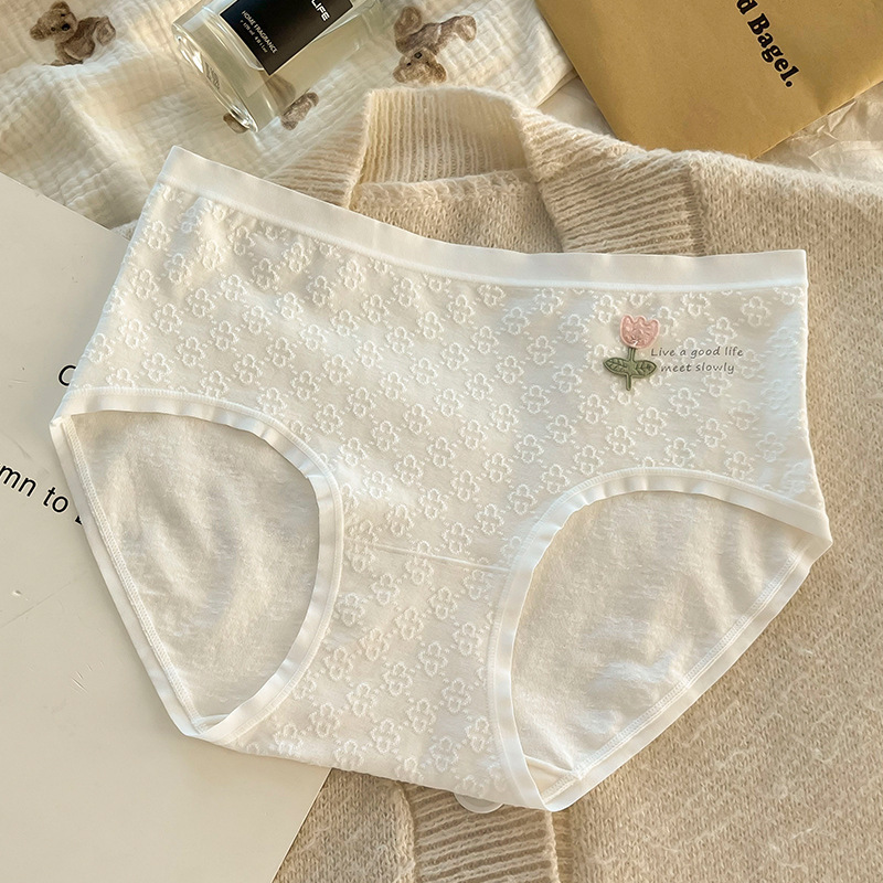 여성용 심리스 팬티, 순면, 작은 꽃, 피부 친화적인 순면 가랑이, 일본 학생 심리스 통기성 여름 팬티스토어 가기