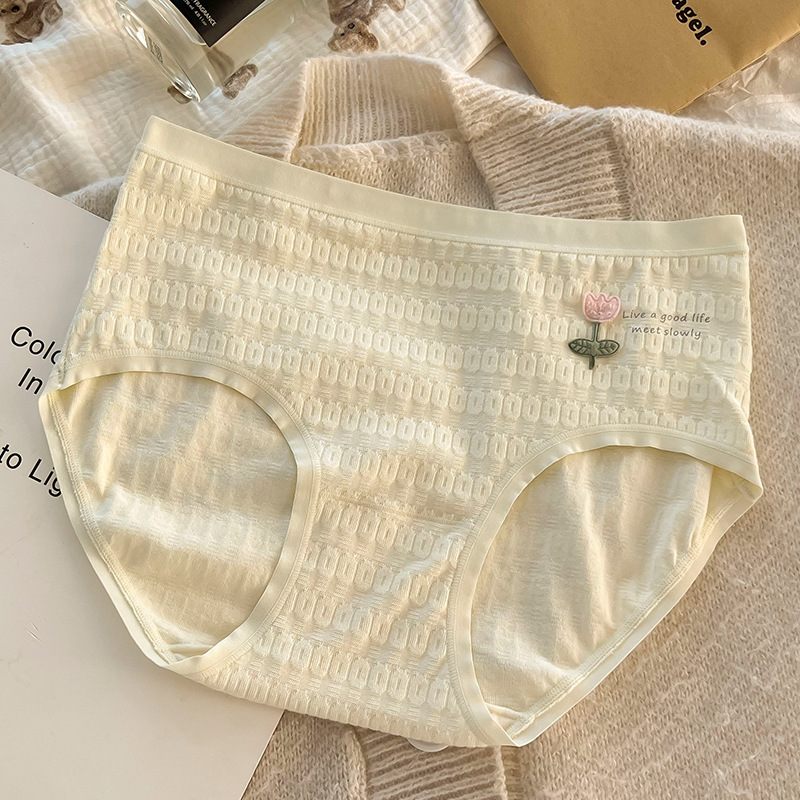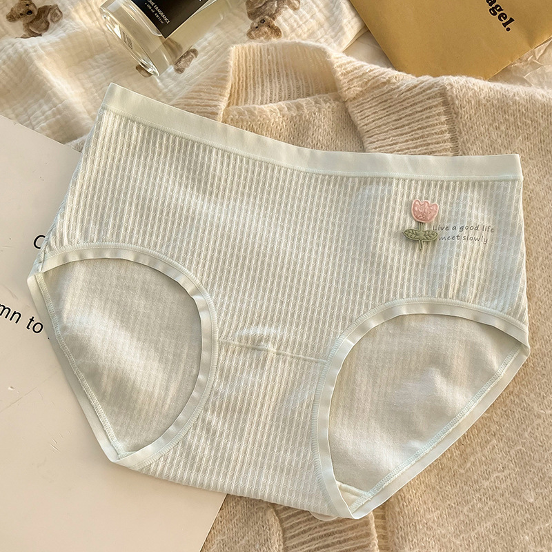 여성용 심리스 팬티, 순면, 작은 꽃, 피부 친화적인 순면 가랑이, 일본 학생 심리스 통기성 여름 팬티