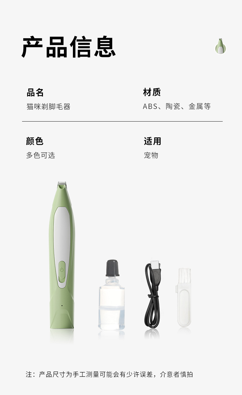 고양이 애완동물용품, 강아지 면도기, 고양이 발톱 무음 전기 이발기, 발바닥 전용 트리머, 발 면도기