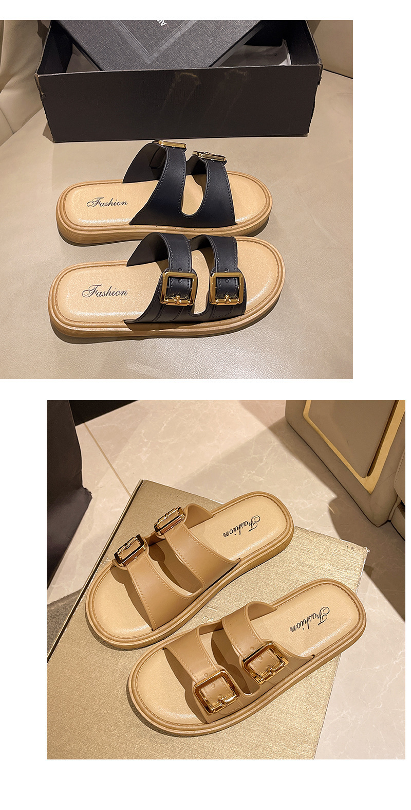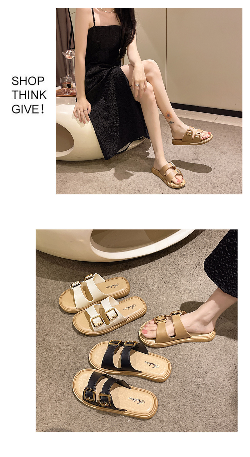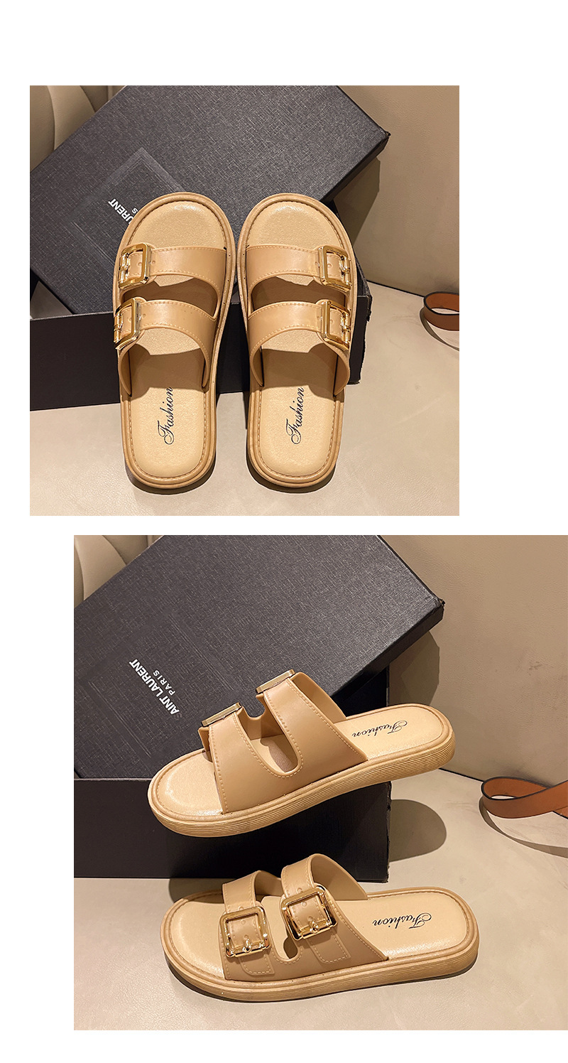 • 더블 스트랩 골드 버클 베이지