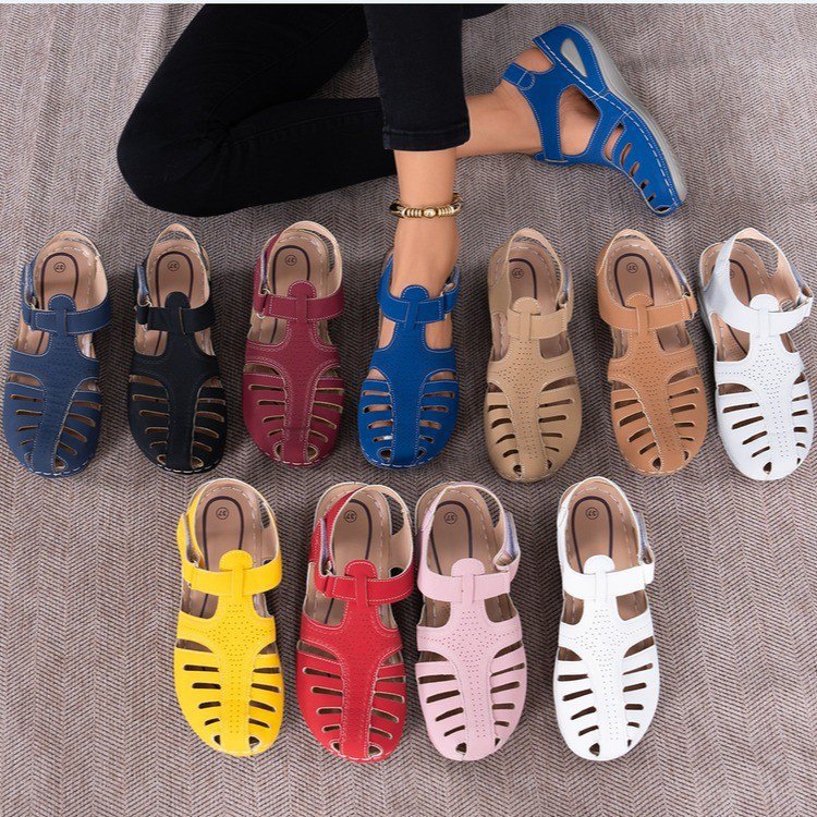 15가지 색상의 새로운 여름 크로스보더 대형 유럽 및 미국 데일리 캐주얼 바오터우 미드힐 벨크로 웨지 샌들스토어 가기
