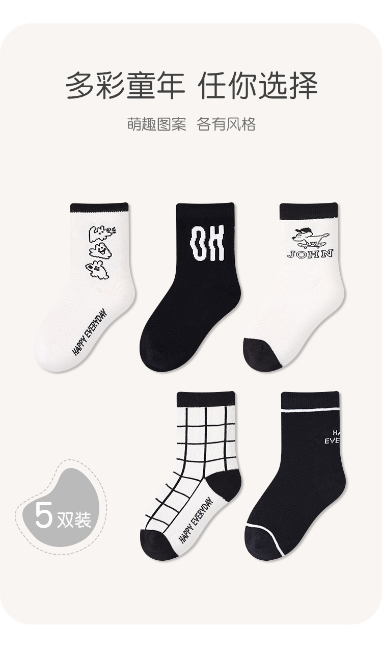 5 쌍-어린이 양말 도매 가을 새로운 흑백 격자 무늬 어린이 양말 스포츠 개 양말면 남성 양말 뼈없는스토어 가기