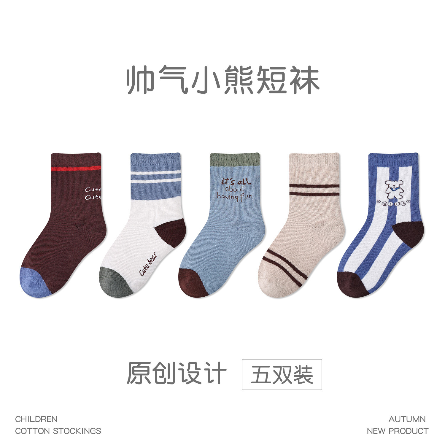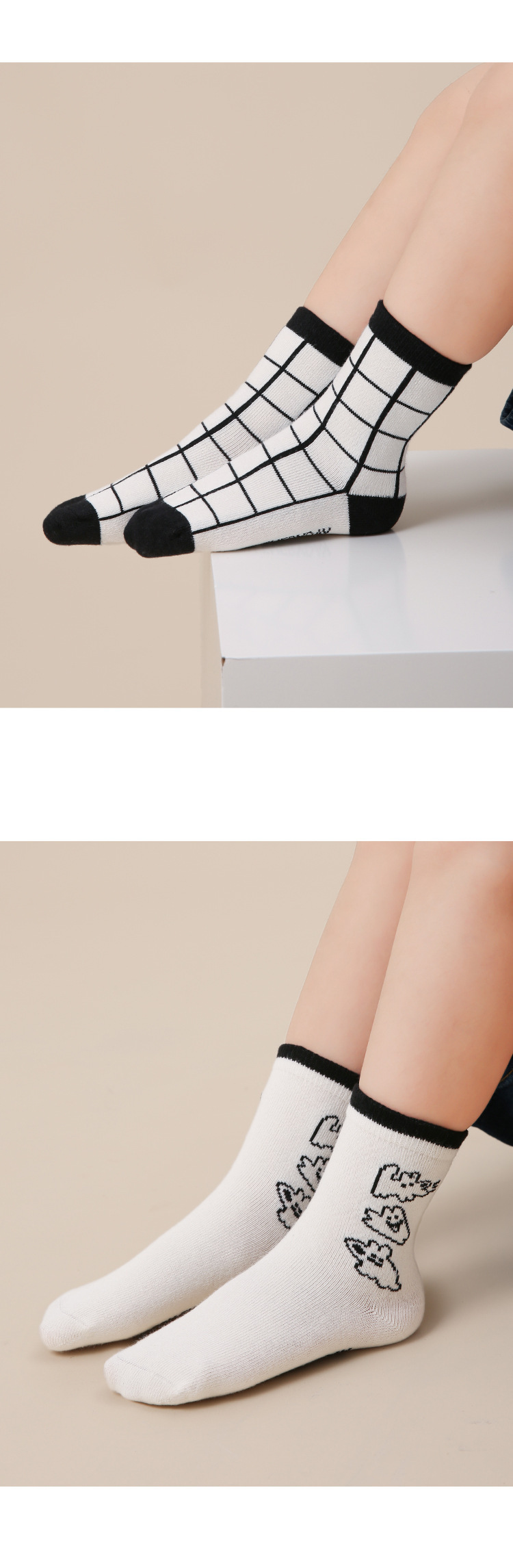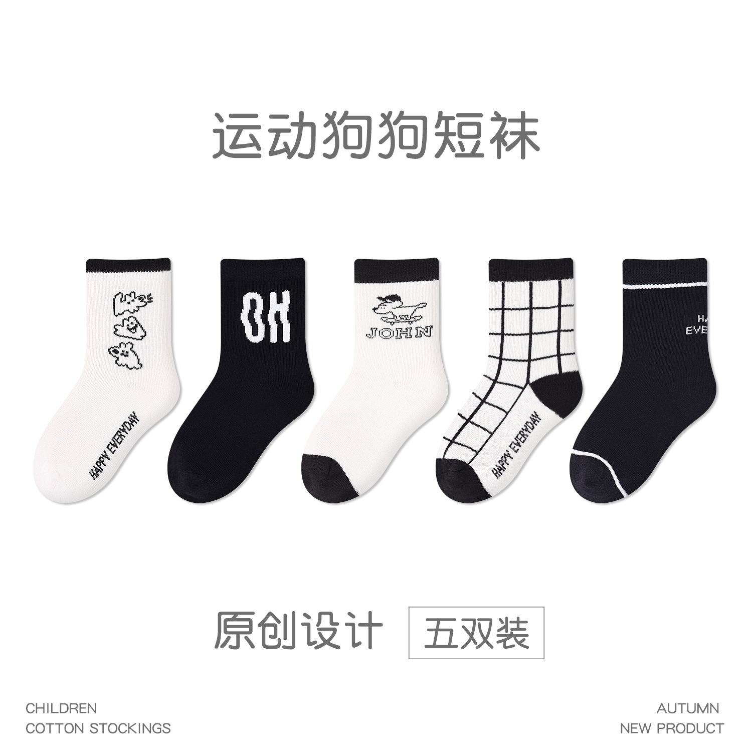 5 쌍-어린이 양말 도매 가을 새로운 흑백 격자 무늬 어린이 양말 스포츠 개 양말면 남성 양말 뼈없는