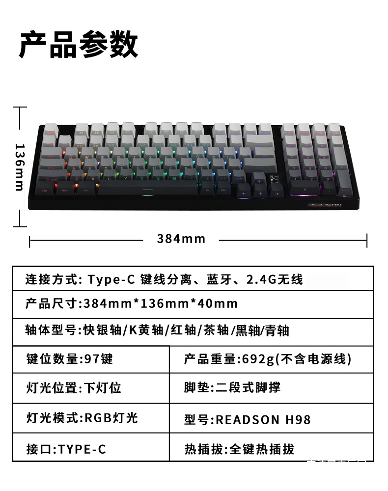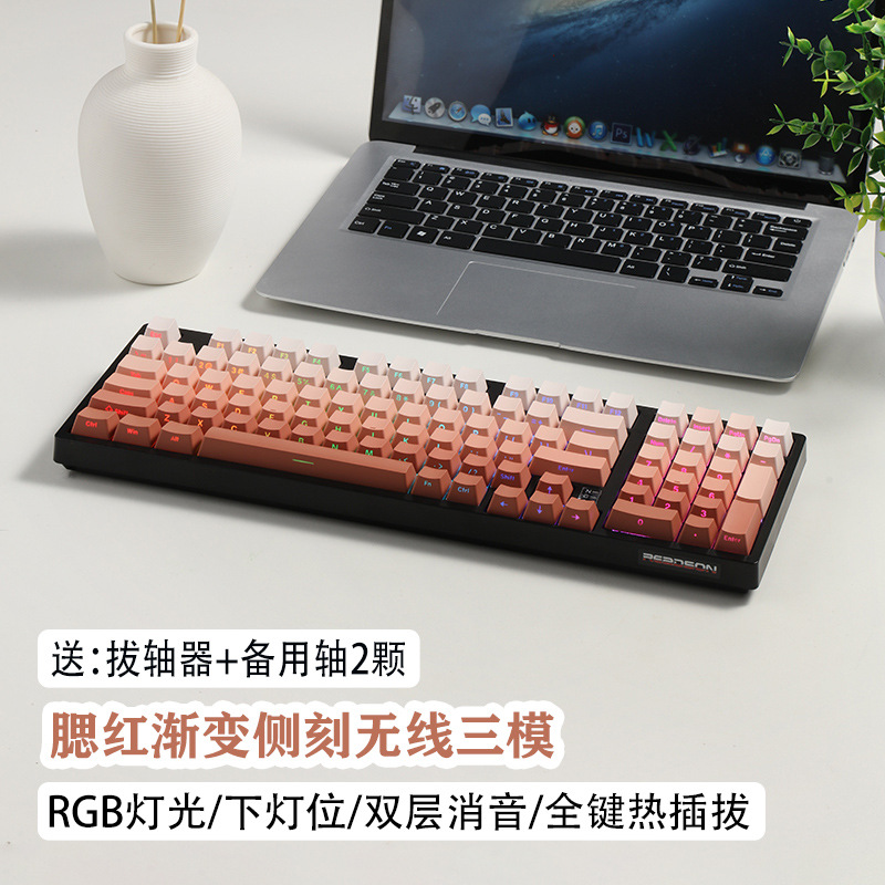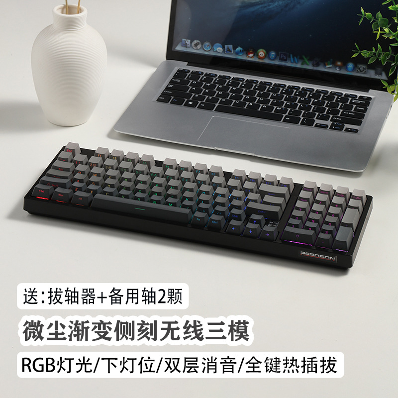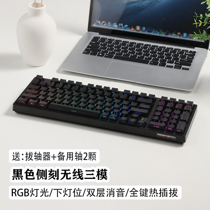 R98 측면 각인 무선 Bluetooth 3 모드 기계식 키보드 하단 조명 위치 핫 스왑 가능 RGB e-스포츠 게임 K 노란색 금속 실버 축