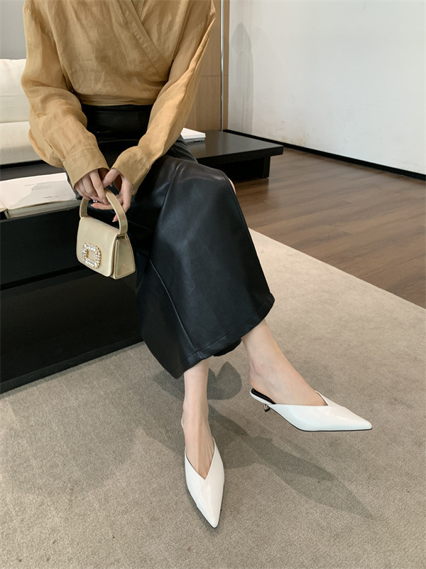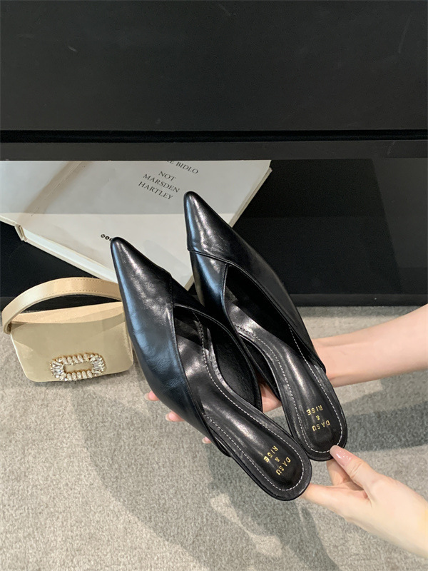 2025 봄 여름 신상 심플 포인티드 토 로우힐 샌들 솔리드 컬러 펌프스 스몰 스틸레토 토 슬리퍼 여성용 아우터웨어스토어 가기