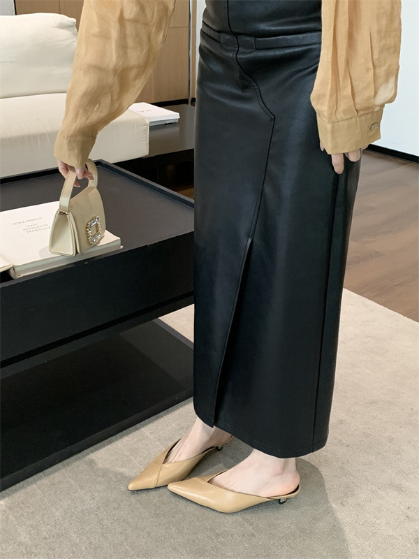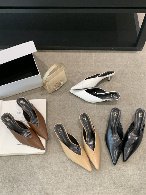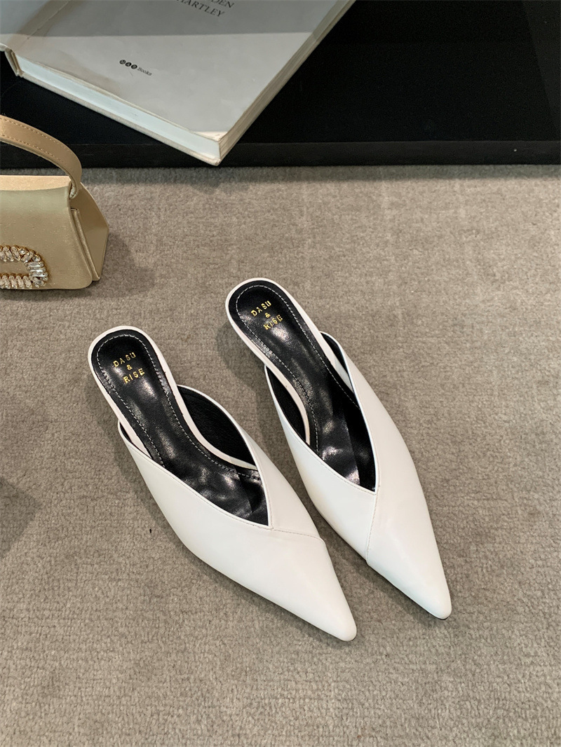 2025 봄 여름 신상 심플 포인티드 토 로우힐 샌들 솔리드 컬러 펌프스 스몰 스틸레토 토 슬리퍼 여성용 아우터웨어