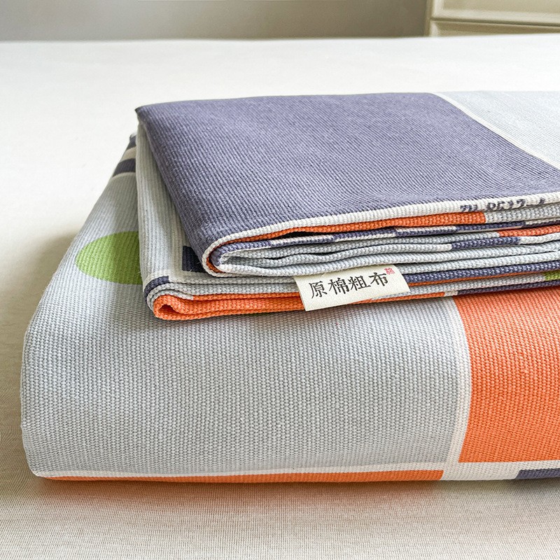 두꺼운 러프한 천 침대 시트 심플한 스트라이프 가정용 더블 사이즈 세탁기 사용 가능 학생 기숙사 원면 침대 시트 3종 세트스토어 가기