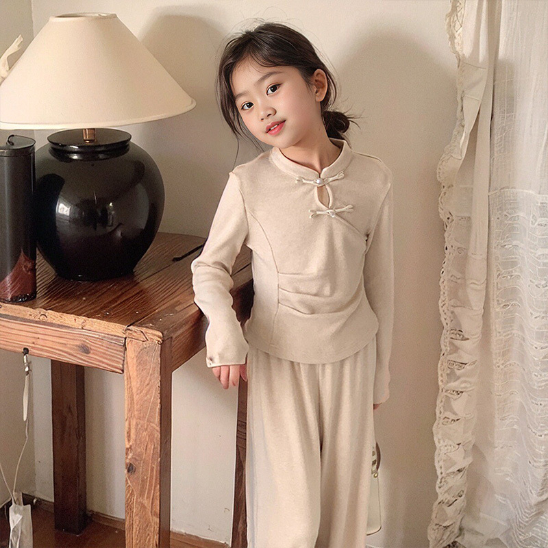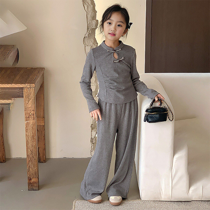 소녀 한국식 긴팔 세트 2024 봄 · 가을 어린이 신상품 올매치 중국식 버클 투피스 세트