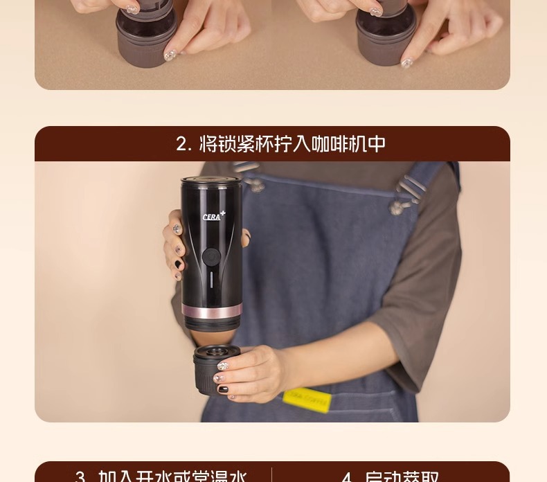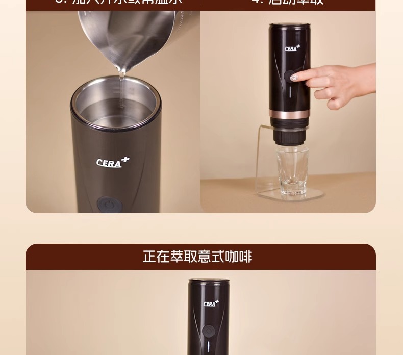 cera+ 국경 간 새로운 자동차 편리한 캡슐 커피 머신 미니 이탈리아 가열식 농축 전기 커피 머신스토어 가기