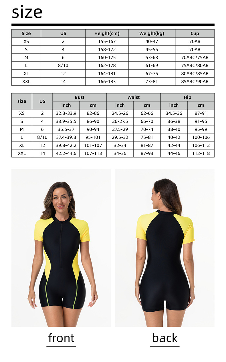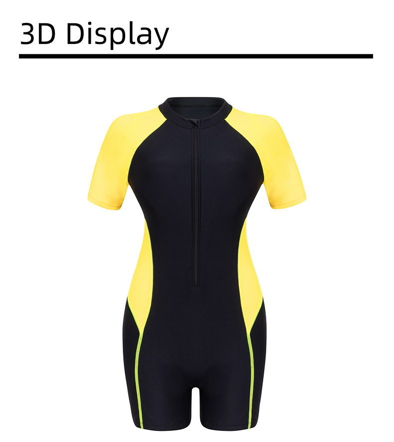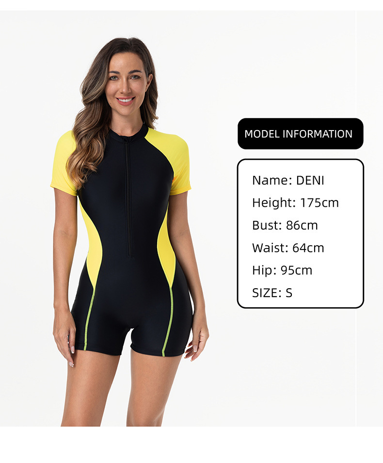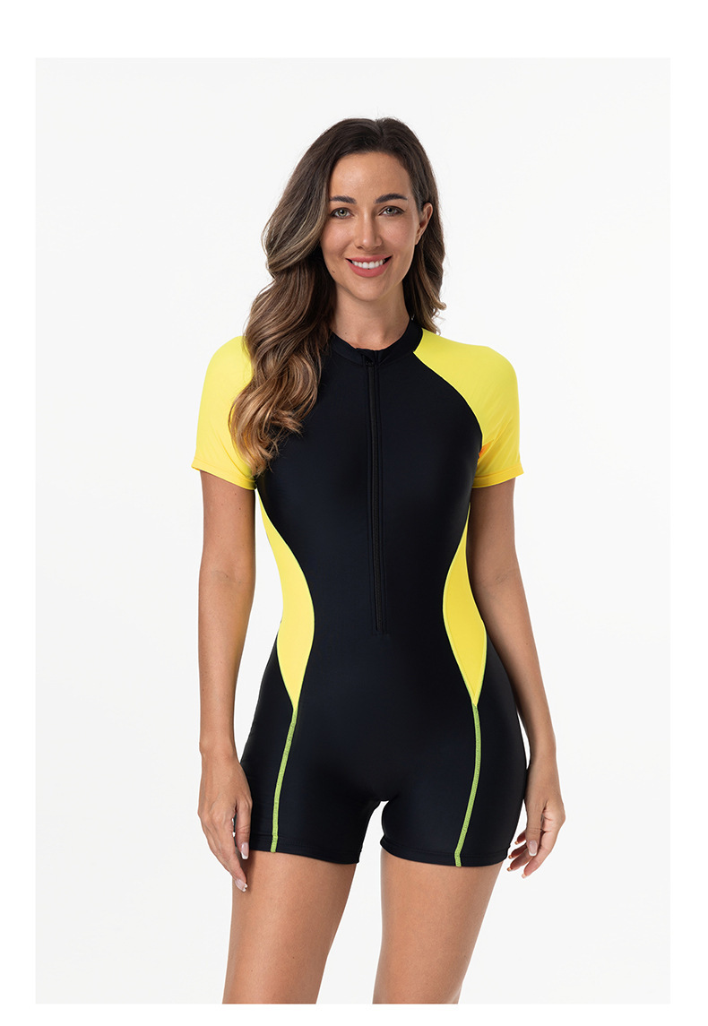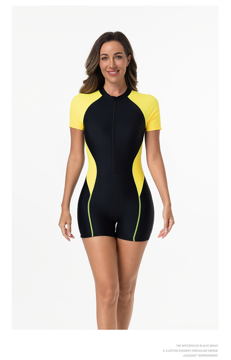 2025 유럽과 미국의 국경 간 새로운 색상 매칭 반팔 원피스 수영복 복서 지퍼 여성 수영복 잠수복 서핑 슈트