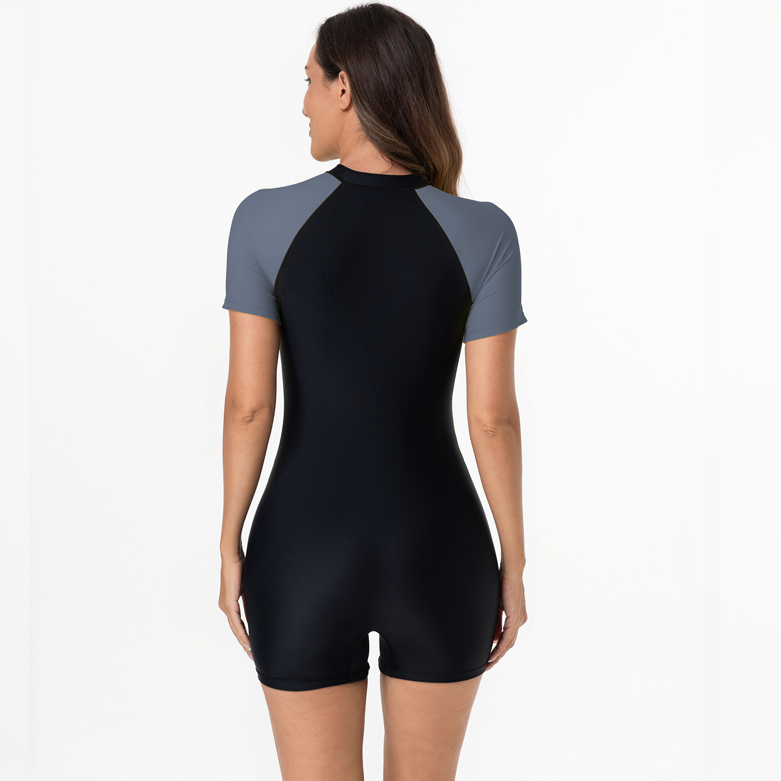 2025 유럽과 미국의 국경 간 새로운 색상 매칭 반팔 원피스 수영복 복서 지퍼 여성 수영복 잠수복 서핑 슈트스토어 가기