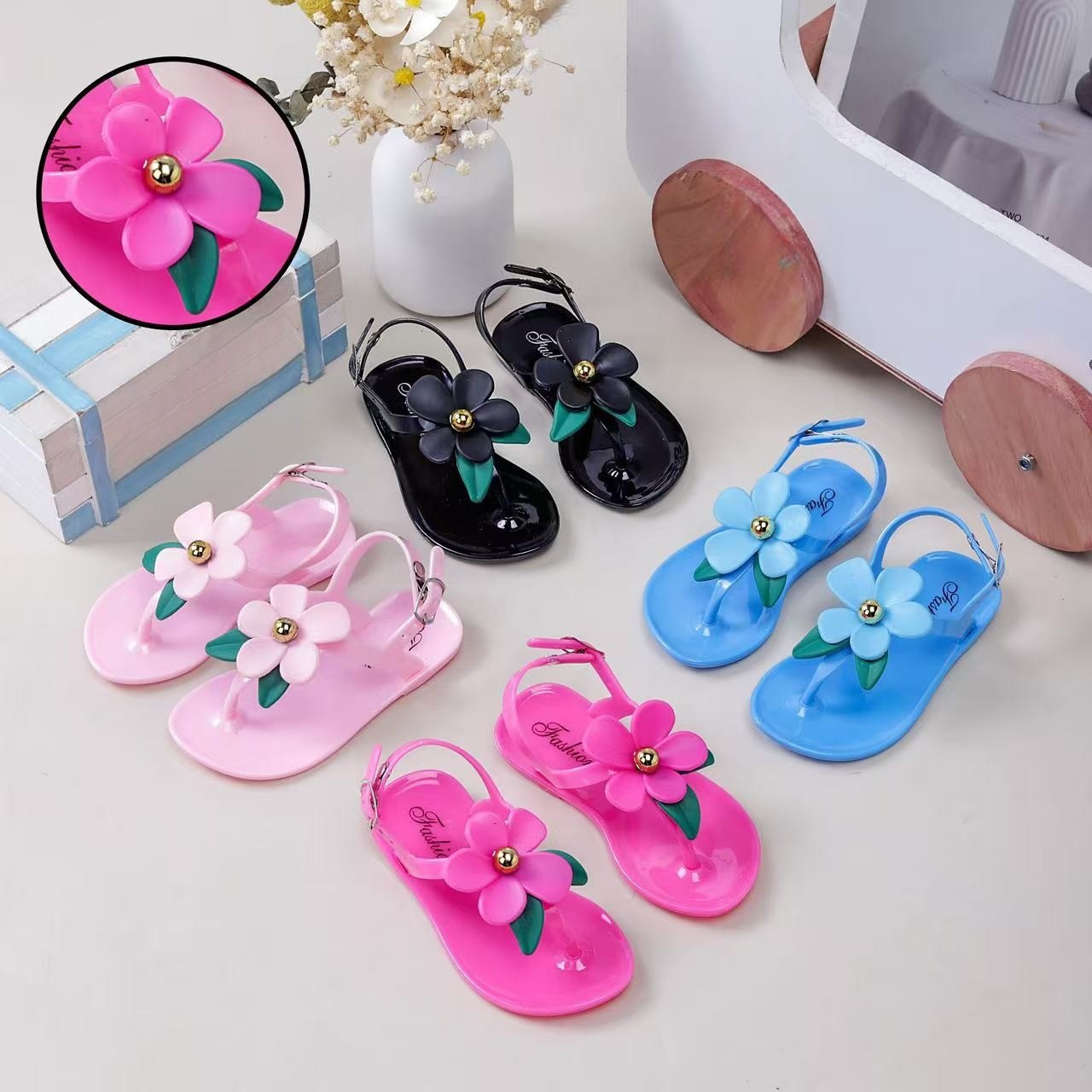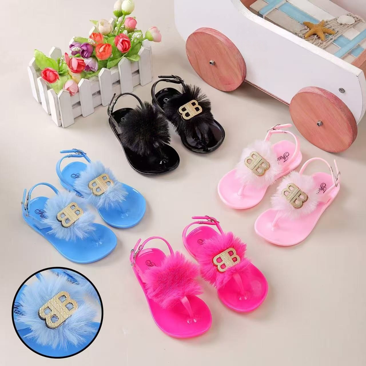 여아용 플랫 샌들 2025 여름 신작 헤링본 어린이 신발 크리스탈 슬리퍼 깃털 솔리드 컬러 인 패션 슬리퍼 배치