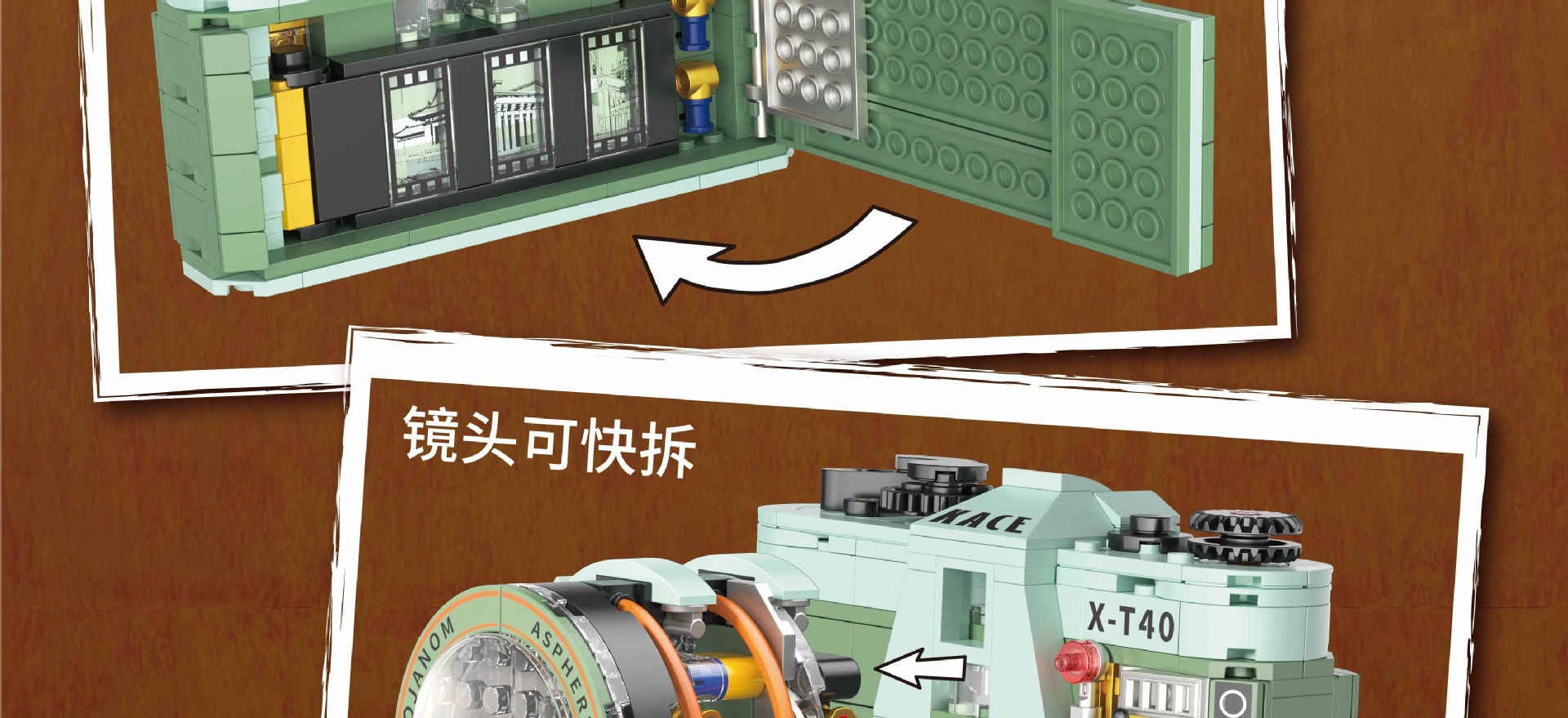 레고 트렌디 플레이 기계식 레트로 카메라 모델 시리즈 손으로 조립 된 빌딩 블록 장식품 교육 어린이 장난감스토어 가기