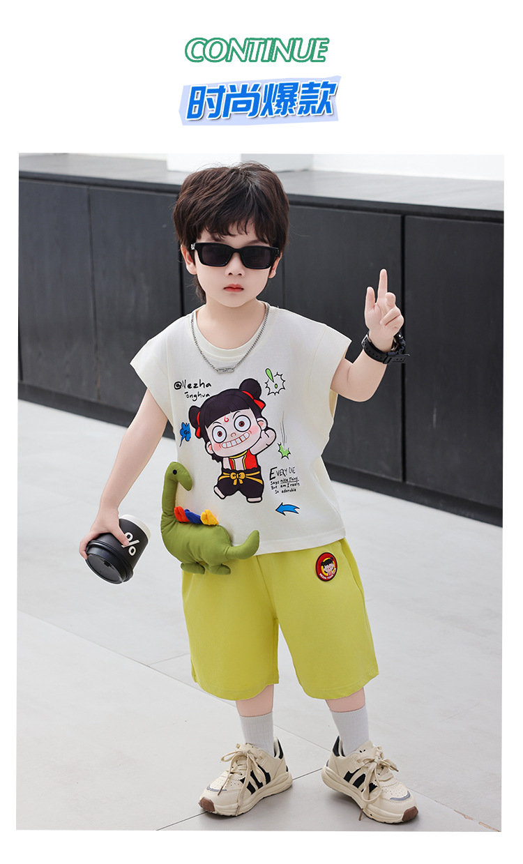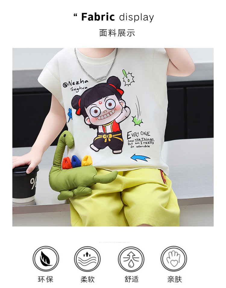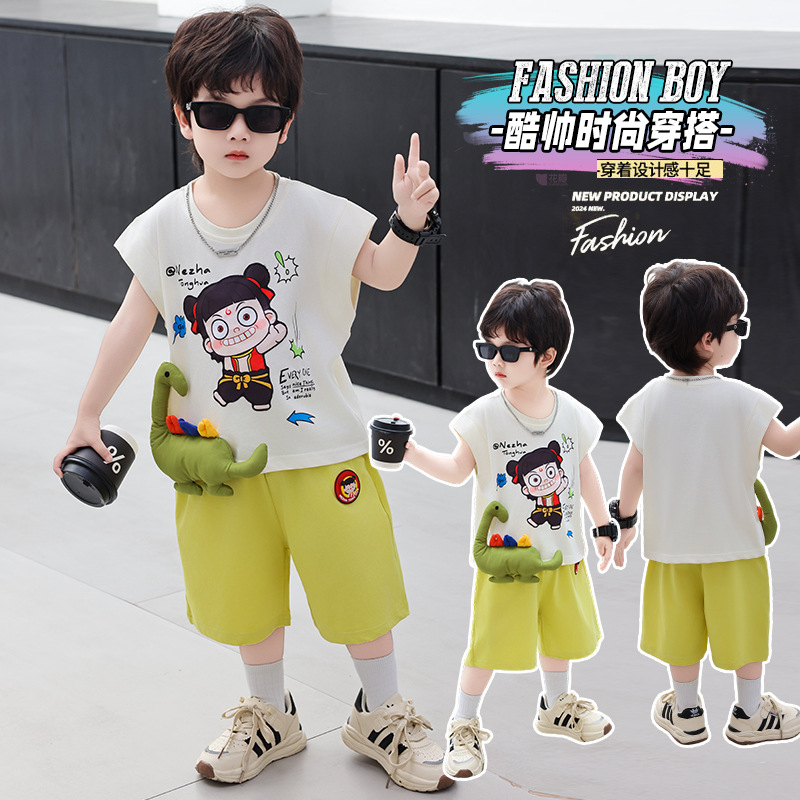 Nezha 아동복 2025 새로운 소년 여름 정장 아기 잘 생긴 민소매 여름 옷 어린 소년 조끼 유행스토어 가기