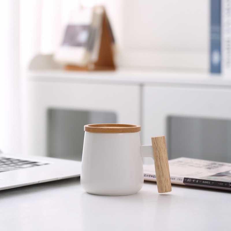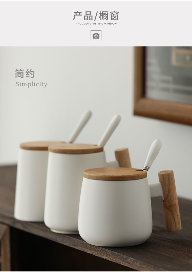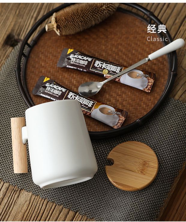 • Kunchengˇ∈흰색 나무 손잡이 싱글 컵 + 뚜껑이 있는 스푼