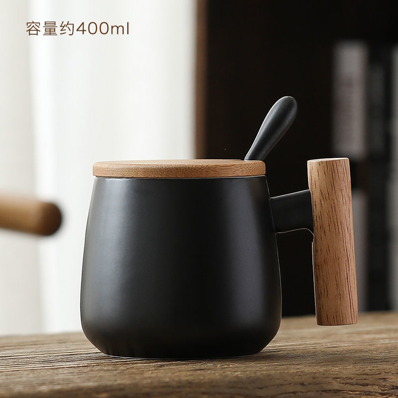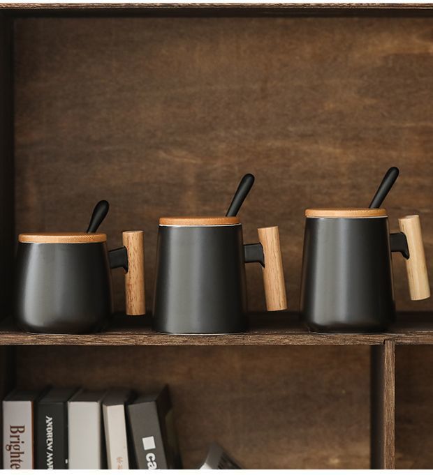 • Kunchengˇ∈검은색 나무 손잡이 싱글 컵 + 뚜껑이 있는 스푼