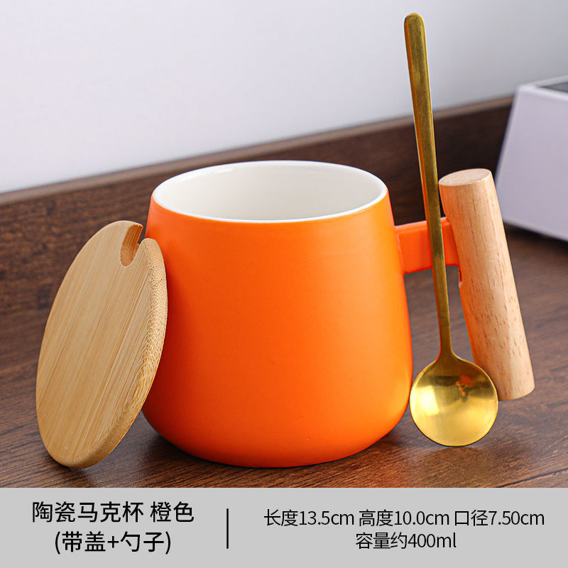 • Kunchengˇ∈매트 오렌지 나무 손잡이 컵+뚜껑+골든 스푼
