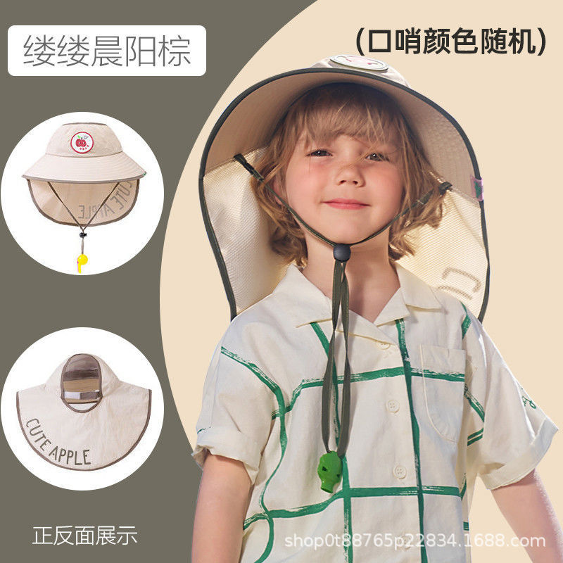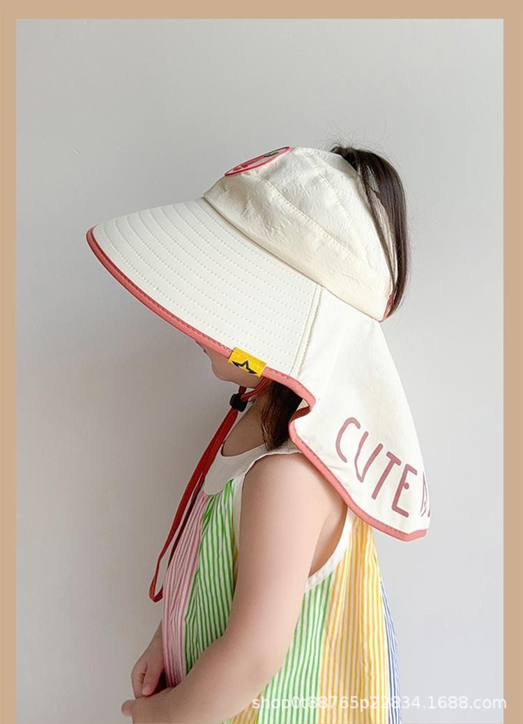 어린이 태양 보호 여름 태양 모자 공주 스타일 UV 소녀 목도리 소년 아기 태양 모자 큰 챙 빈 모자