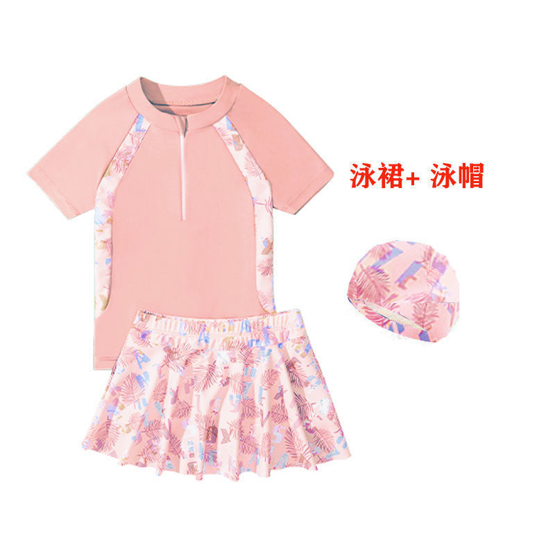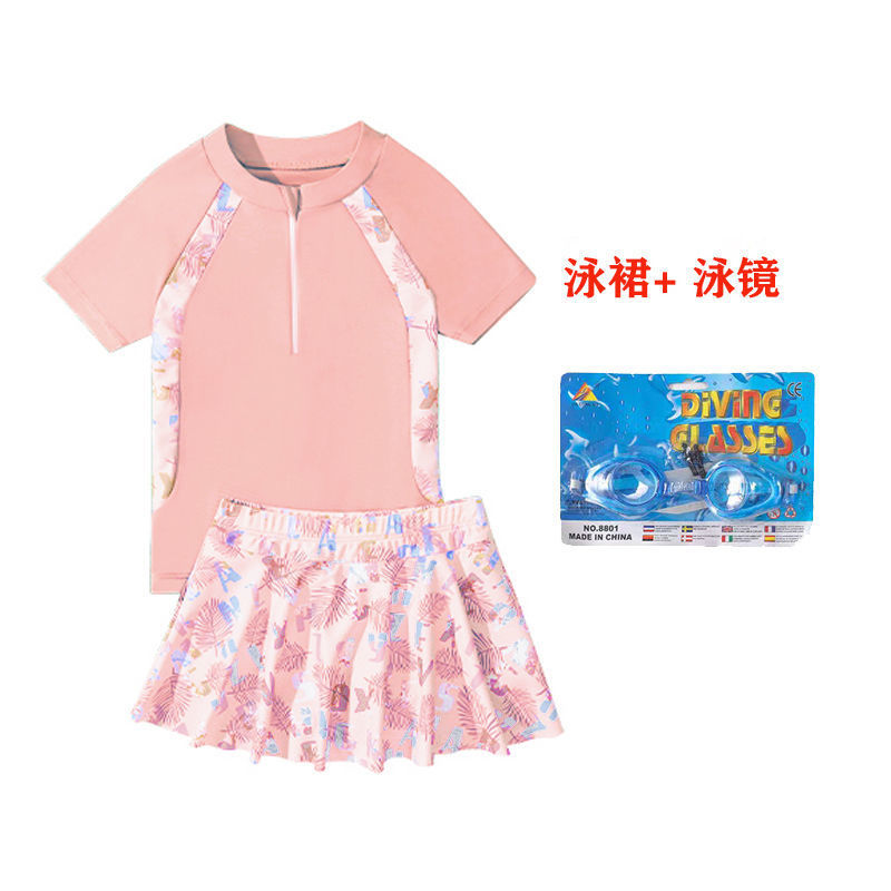 • 작은 꽃무늬 수영 스커트 핑크 + 수영 모자 + 수영 고글