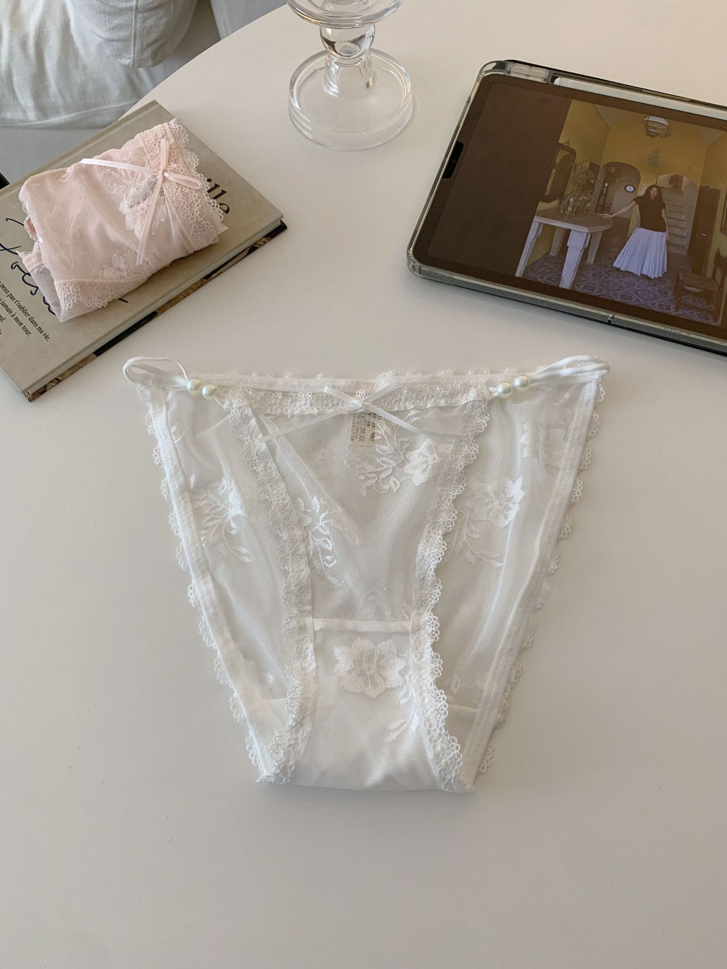Camellia~10A 항균 섹시 레이스 속옷 여성 로우 웨이스트 퓨어 러브 펄 스트랩 퓨어 코튼 팬티