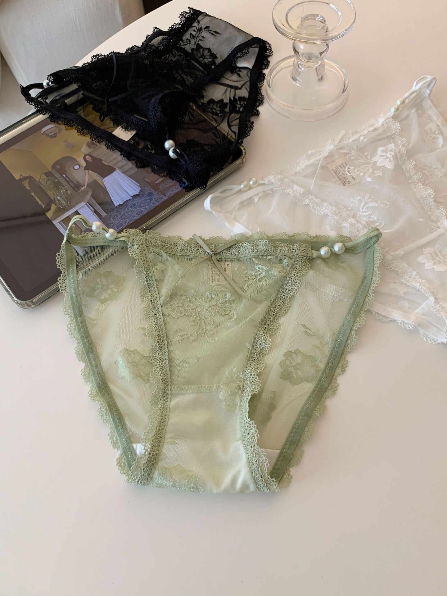 Camellia~10A 항균 섹시 레이스 속옷 여성 로우 웨이스트 퓨어 러브 펄 스트랩 퓨어 코튼 팬티스토어 가기
