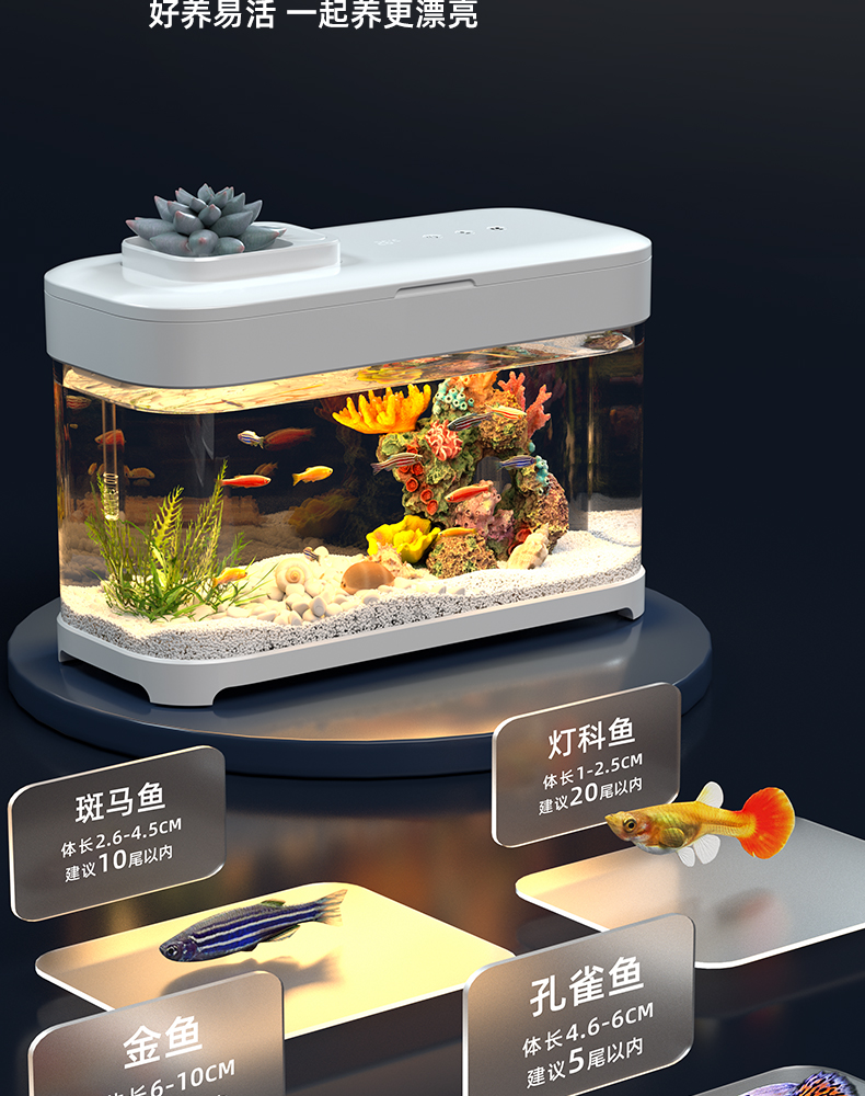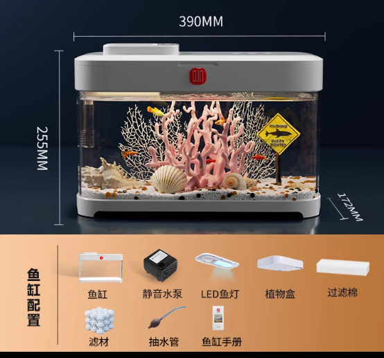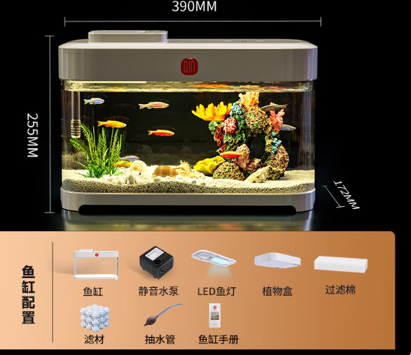 물 교환 없이 게으른 어항, 가정용 데스크탑 생태학적 거실, 소형 자체 순환 2024 새로운 책상 소형 어항스토어 가기