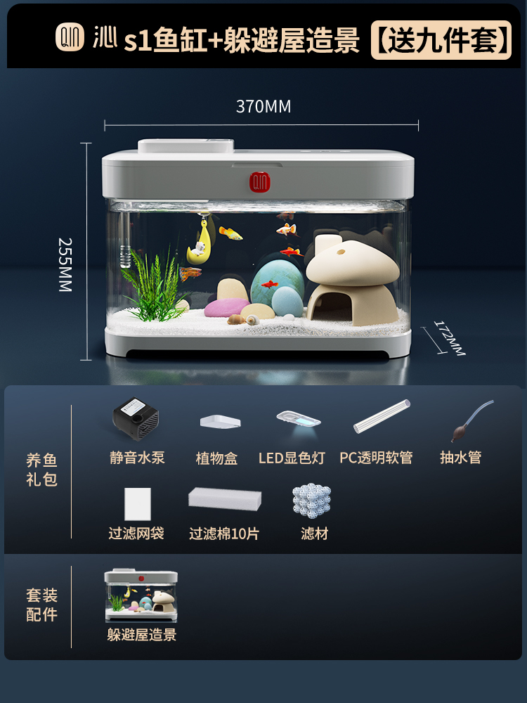 물 교환 없이 게으른 어항, 가정용 데스크탑 생태학적 거실, 소형 자체 순환 2024 새로운 책상 소형 어항