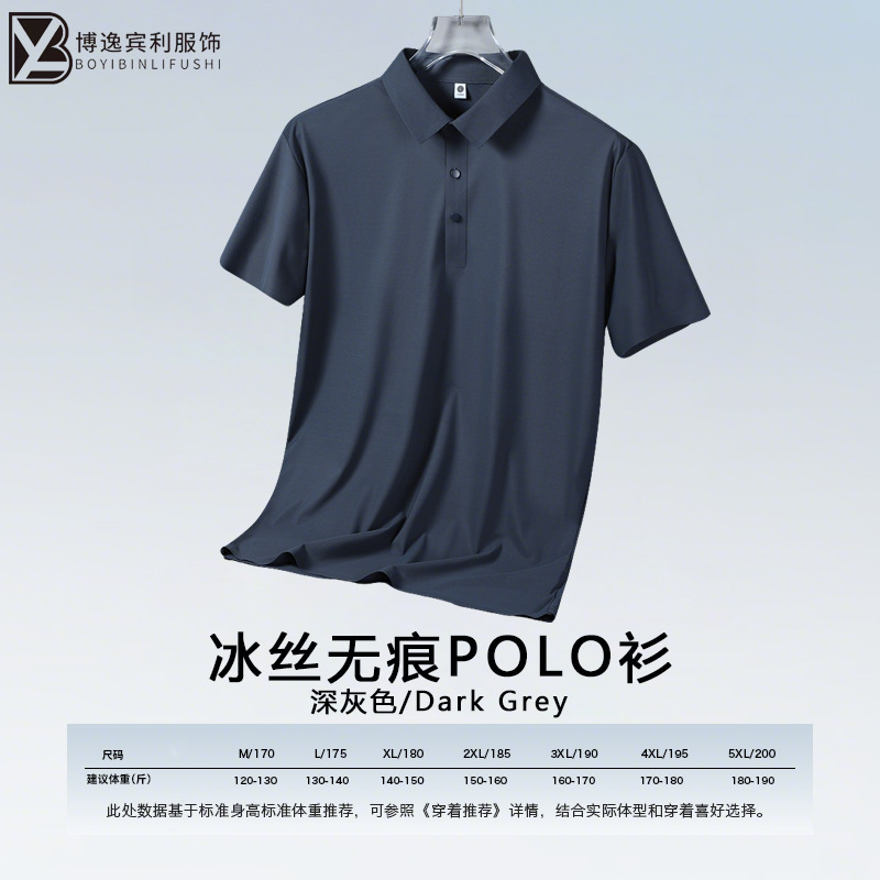 비즈니스 아이스 실크 원활한 남성 반팔 엘 폴로 셔츠 빠른 건조 티셔츠 남성용 고무 여름 남성용 반팔 티셔츠