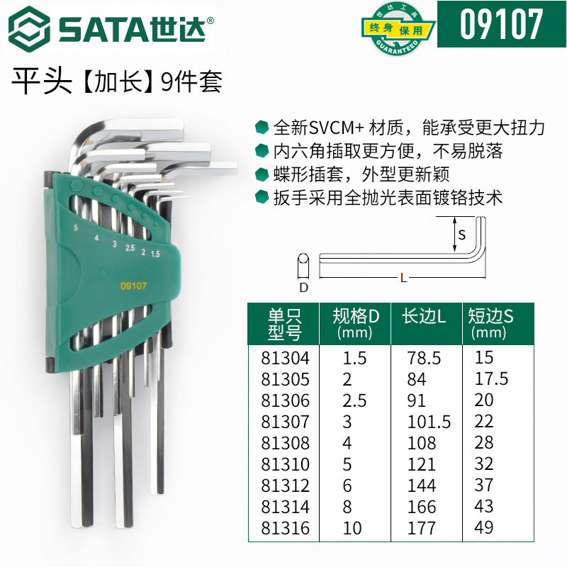 • 09107/9개 확장 플랫 헤드 육각 렌치 세트