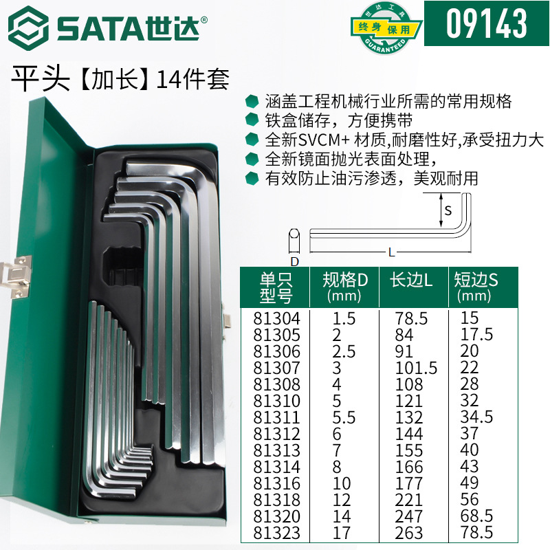 • 09143/14개 확장 플랫 헤드 육각 렌치 세트