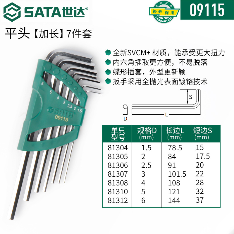 • 09115/7개 확장 플랫 헤드 육각 렌치 세트
