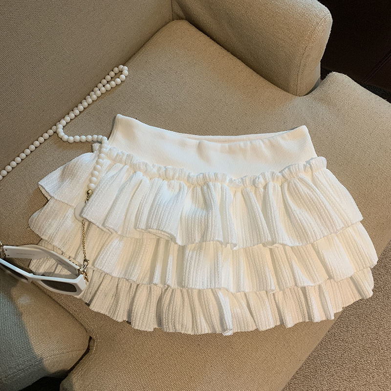 여성을위한 달콤한 발레 스타일 푹신한 다층 케이크 스커트 여름 새로운 작은 탄성 허리 짧은 스커트