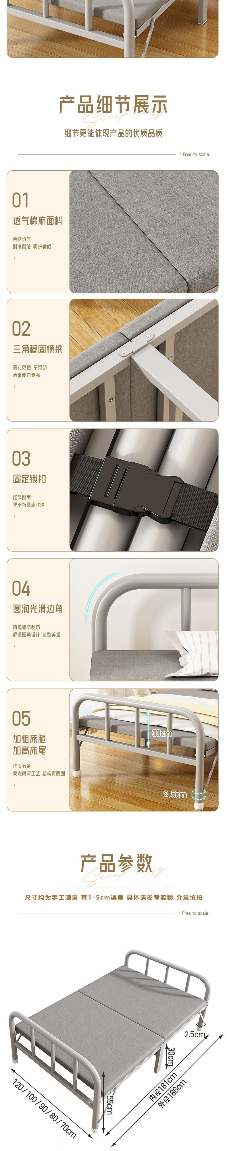 1인용 접이식 침대 시트, 간이 침대, 사무실 낮잠용품, 기숙사 점심시간 휴대용 임대 주택, 성인용 철제 침대