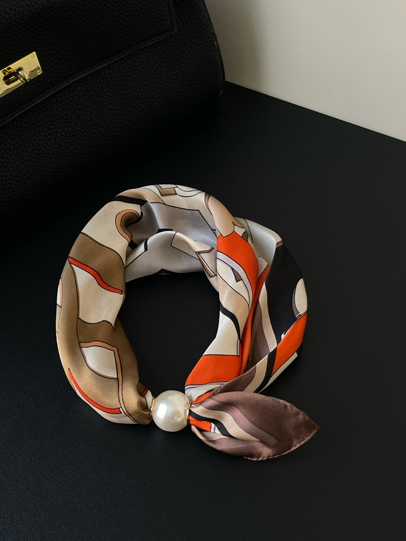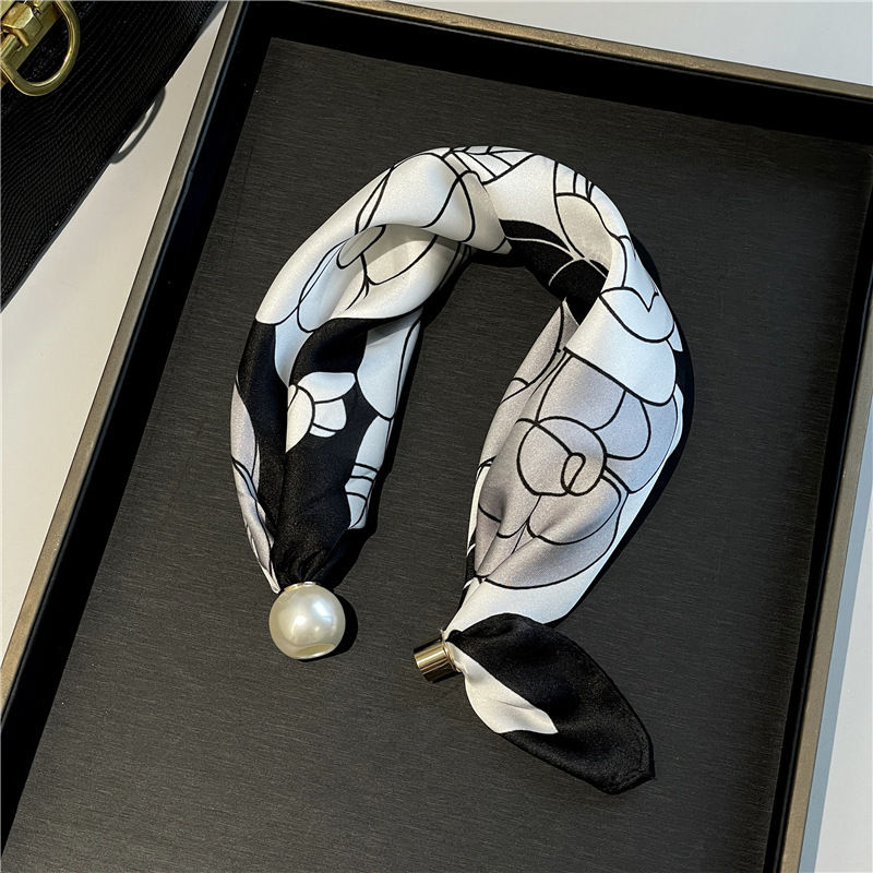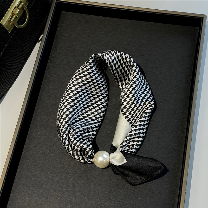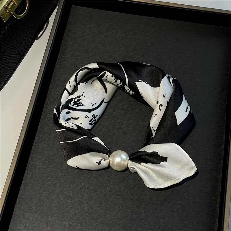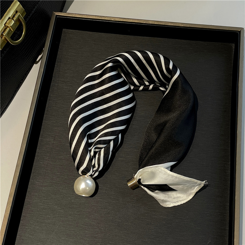 2025 새로운 봄, 여름 얇은 진주 목걸이 마그네틱 버클 게으른 실크 스카프 여성 펜던트 스카프 쇄골 체인 스카프