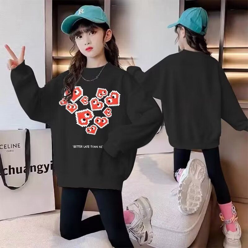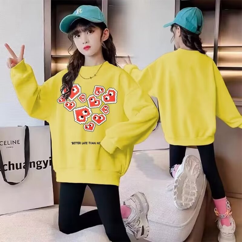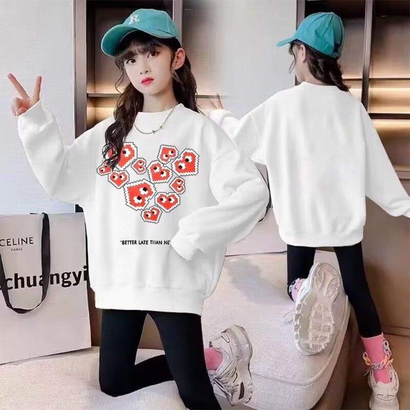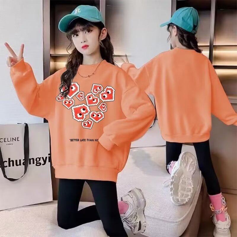 소녀 스웨트 셔츠 2024 가을 새로운 어린이 만화 탑 아기 캐주얼 긴 소매 미드 빅 어린이 올 매치 티셔츠 트렌디스토어 가기