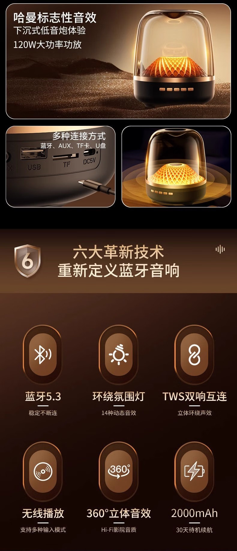 [블랙 골드 컬렉션] 하만턴의 동일한 블루투스 스피커 중형 컴퓨터 무선 스피커 동일한 서브우퍼 글라스