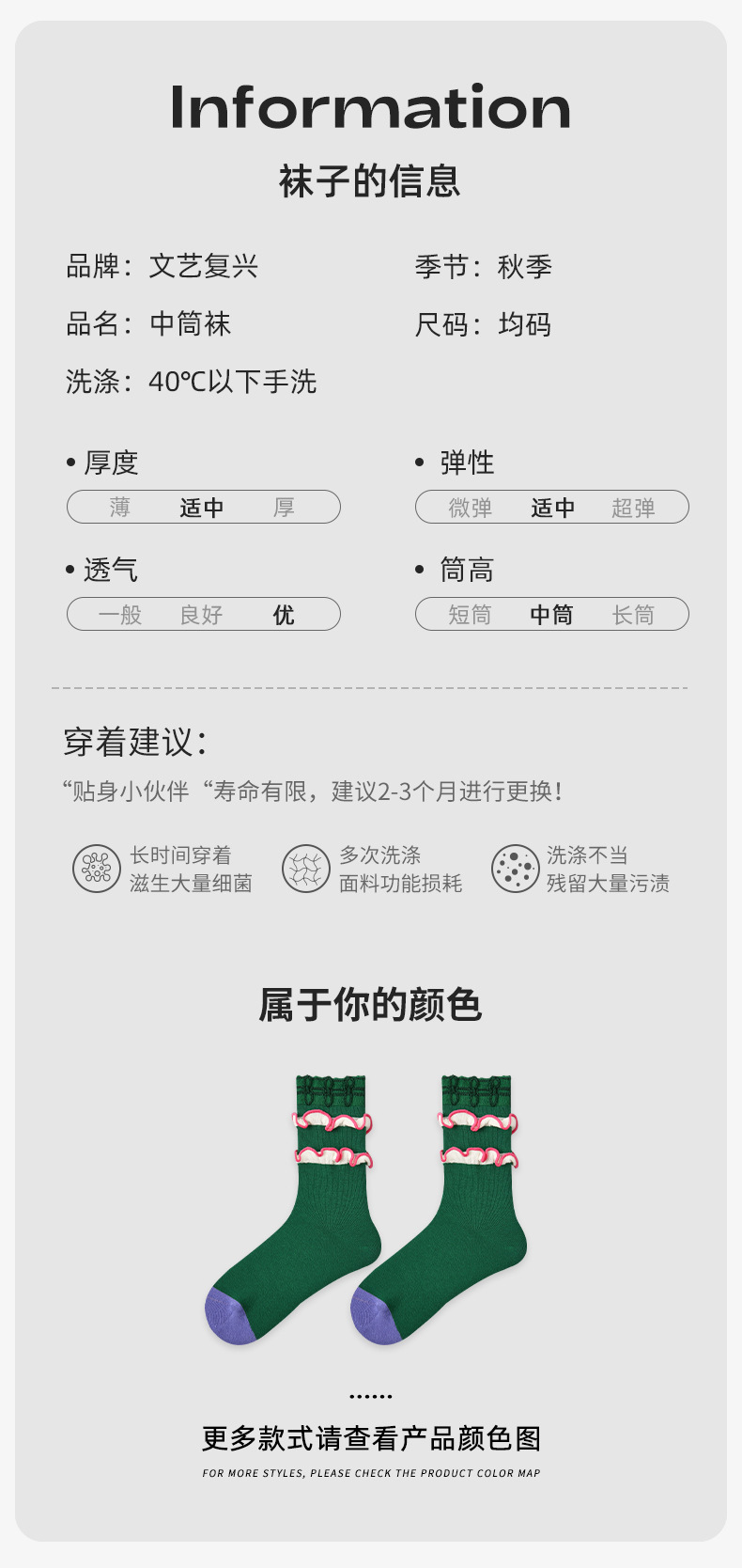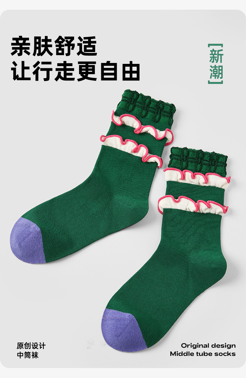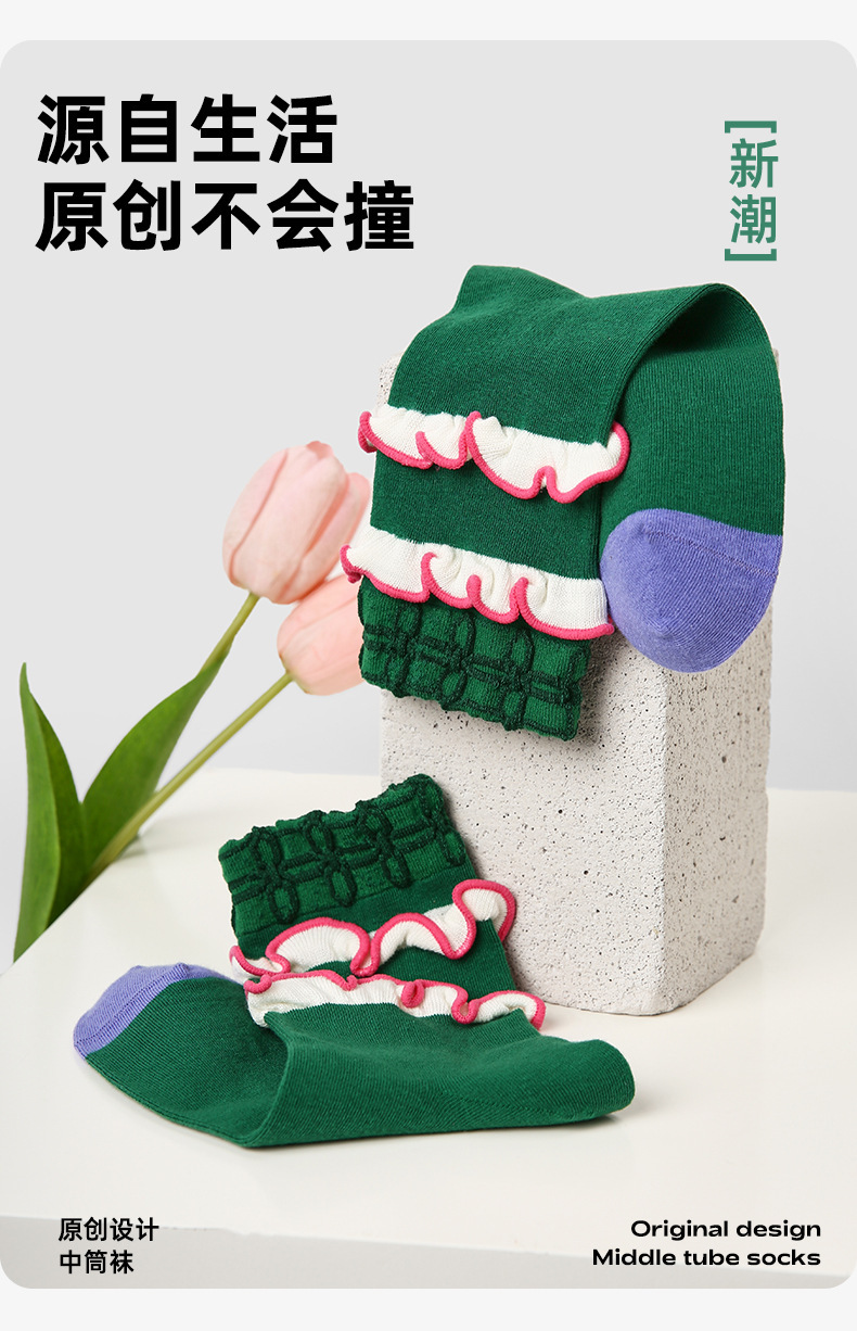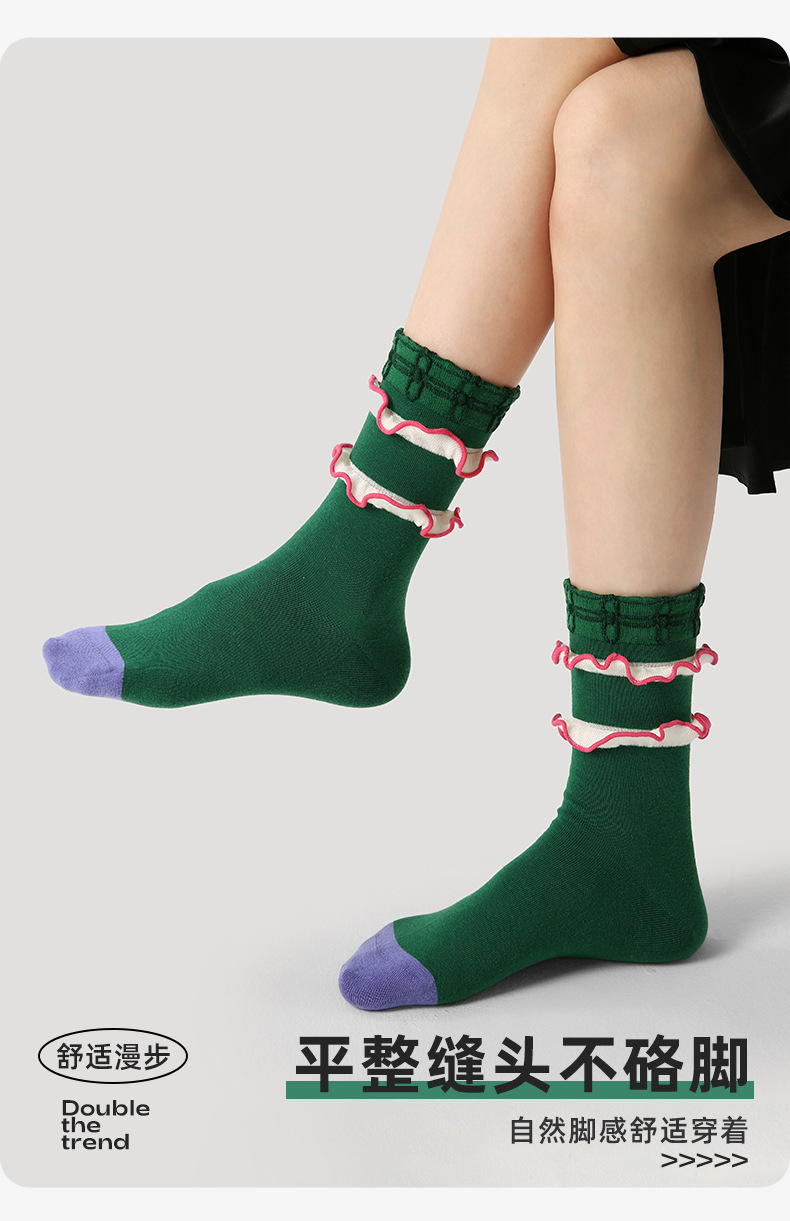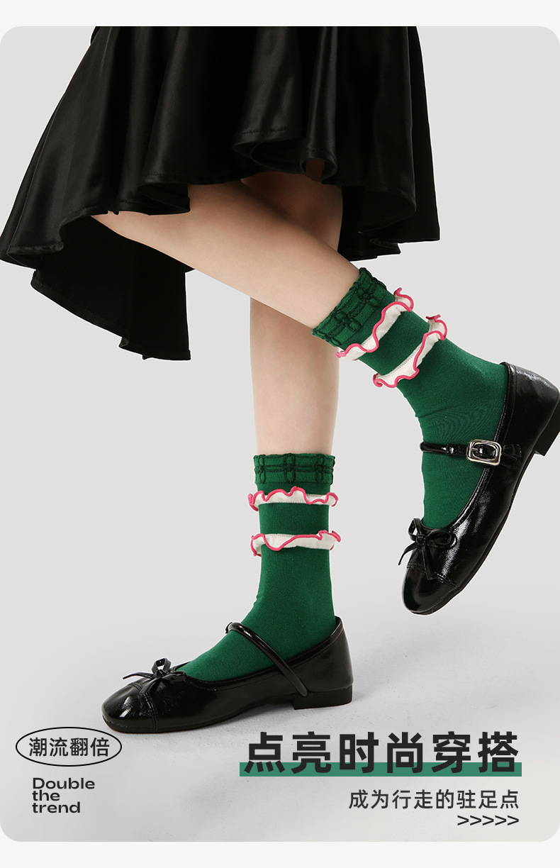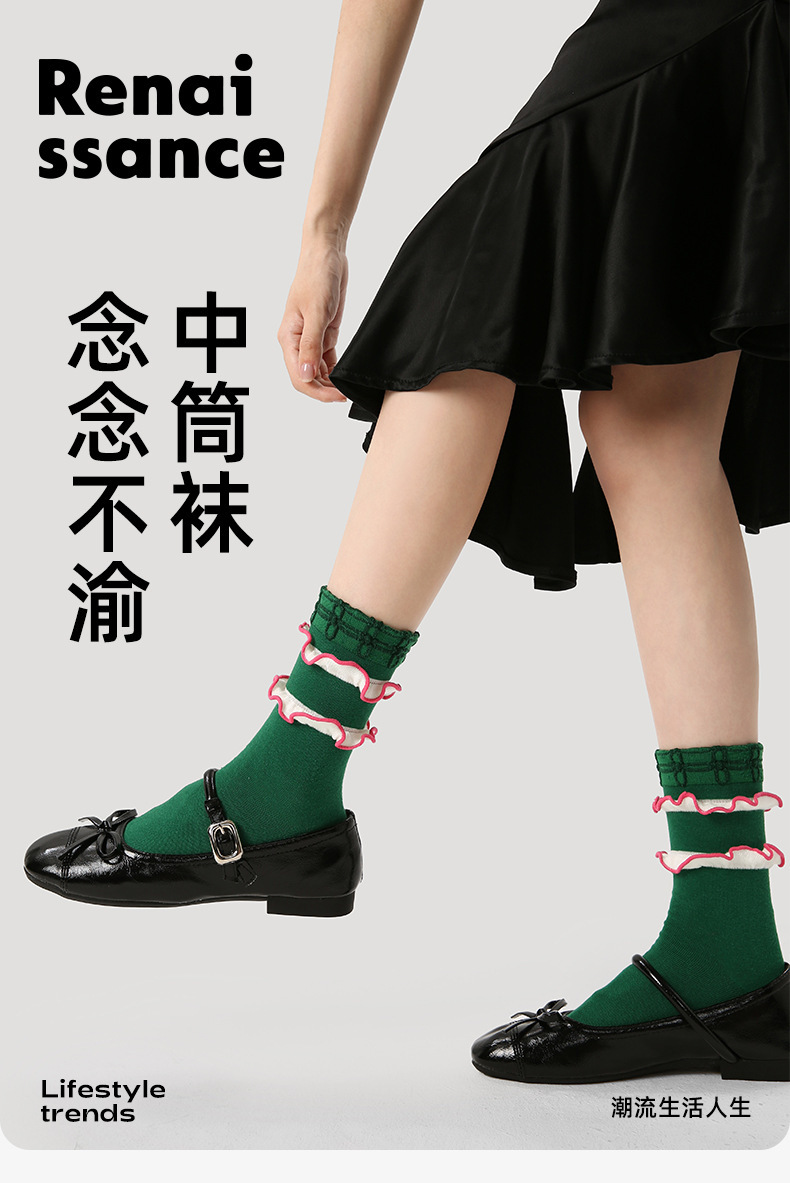 르네상스 그린 양말 여성 레이스 봄, 가을 얇은 중간 튜브 양말 일본 레이스 로리타 공주 양말스토어 가기