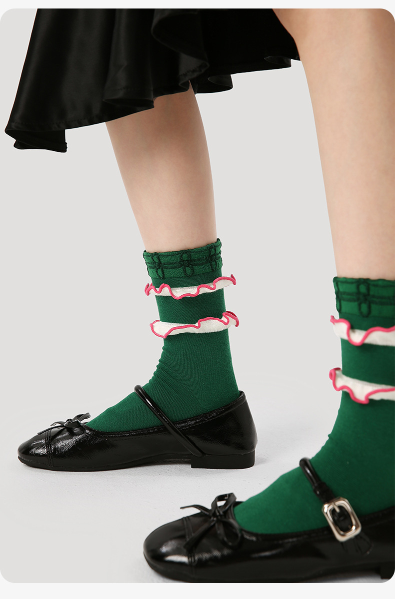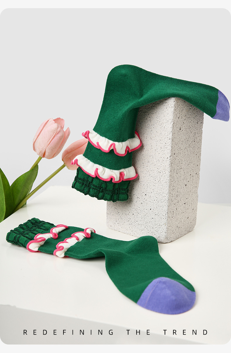 르네상스 그린 양말 여성 레이스 봄, 가을 얇은 중간 튜브 양말 일본 레이스 로리타 공주 양말