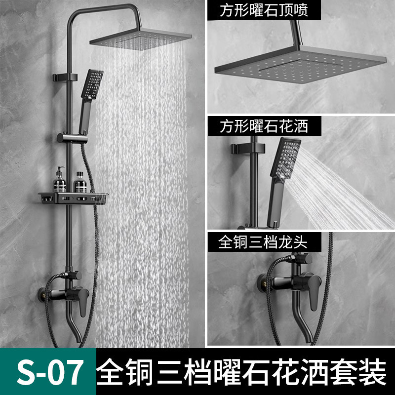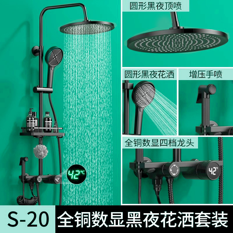 독일산 전체 구리 일정한 온도 샤워 헤드 세트 가정용 검정색 가압 욕실 레인 샤워 헤드 표면 장착형 샤워기
