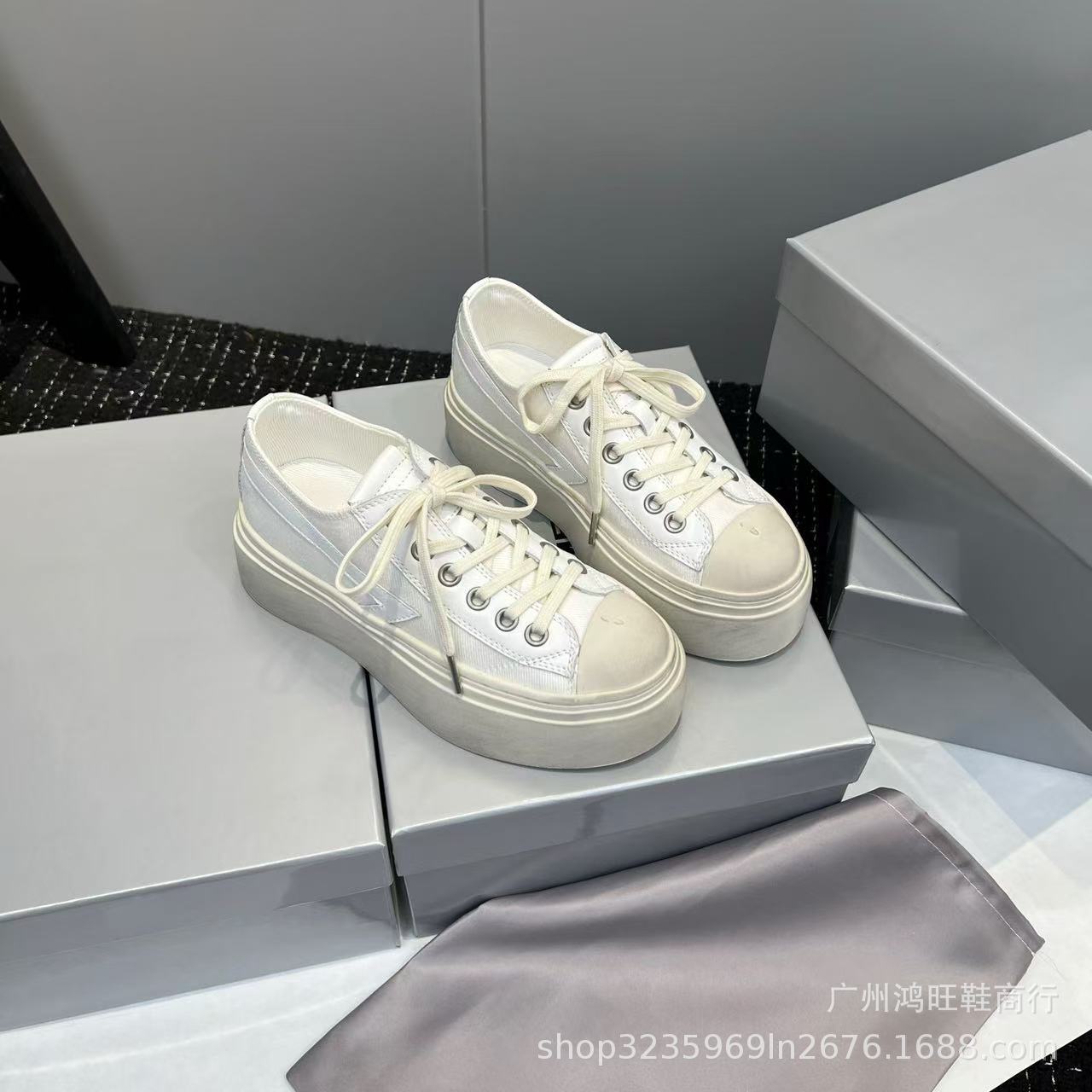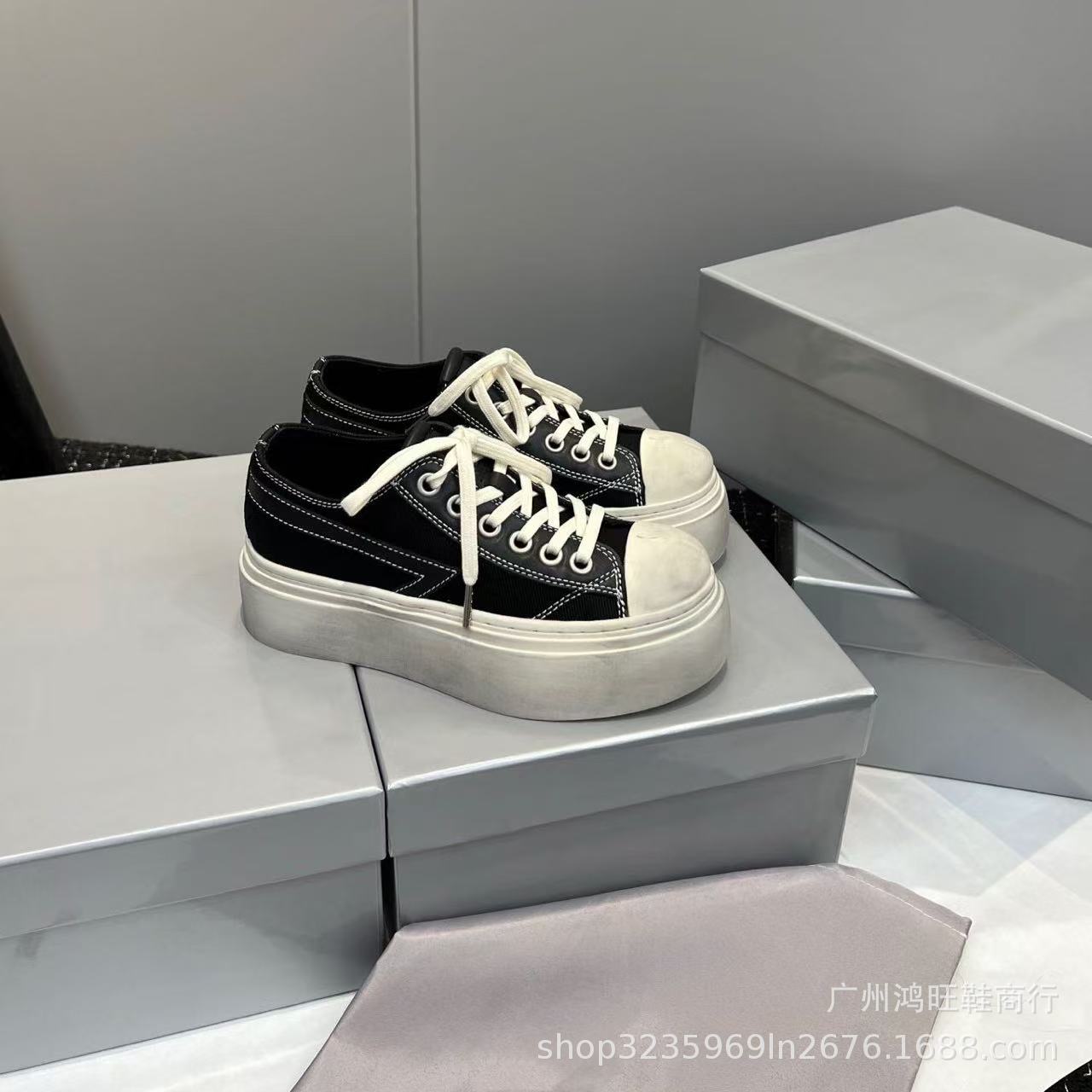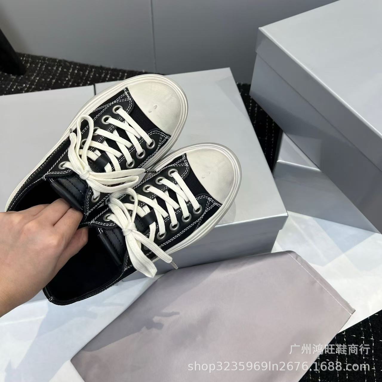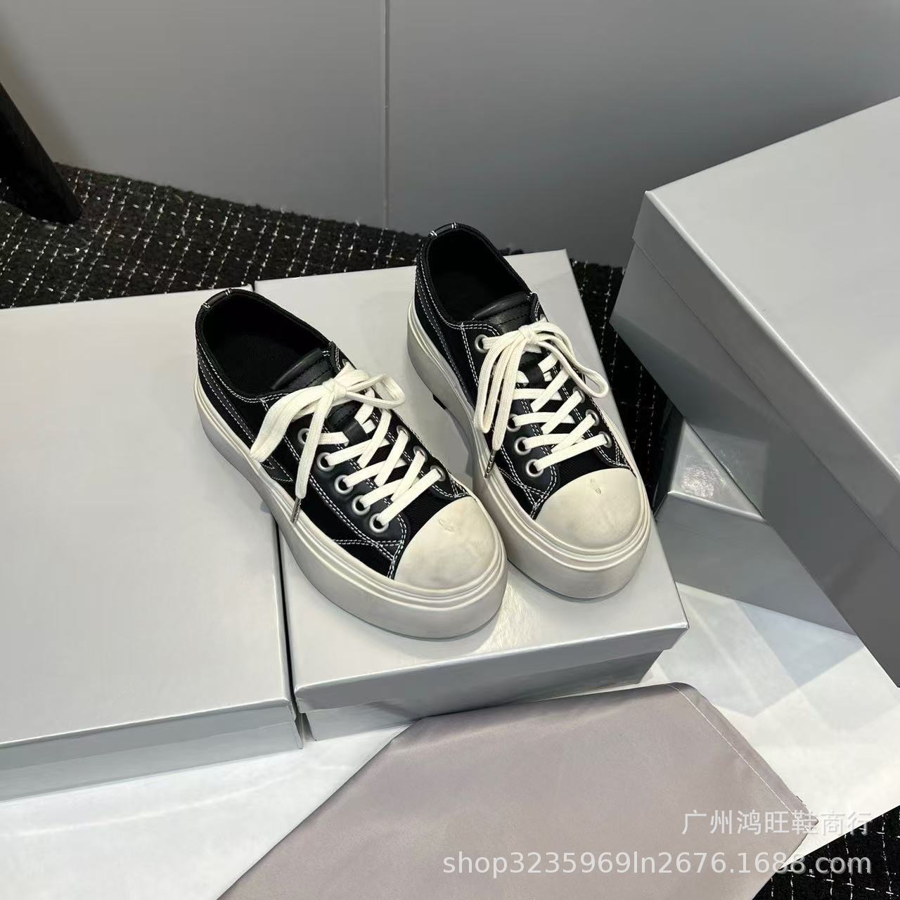 2025 새로운 SMFK 플랫폼 캔버스 신발 여성용 십자형 강화 보드 신발 흑백 대비 캐주얼 광야 스케이트 보드 신발스토어 가기