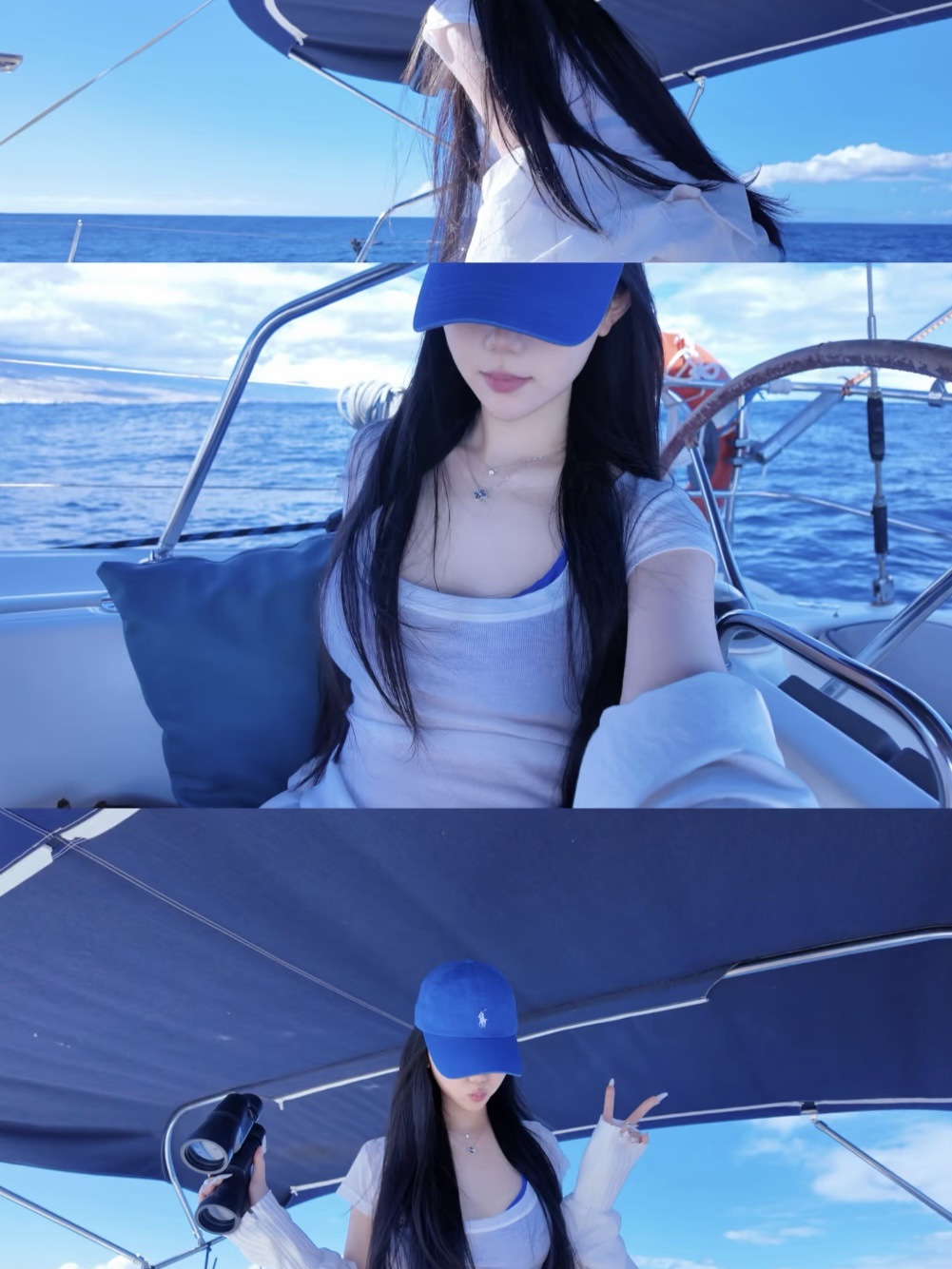 인터넷 연예인의 인기 클라인 블루 비키니 3피스 캐주얼 휴가 요트 사진 흰색 및 슬리밍 수영복