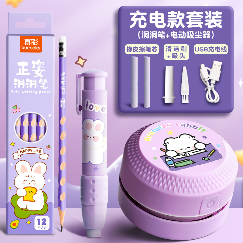 • 충전·귀여운 소녀 [청소기 + 같은 스타일 지우개 + 구멍난 연필] 무료 3종 세트