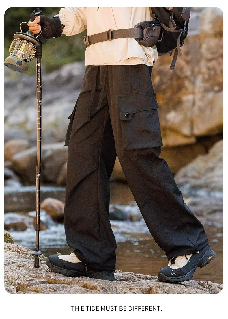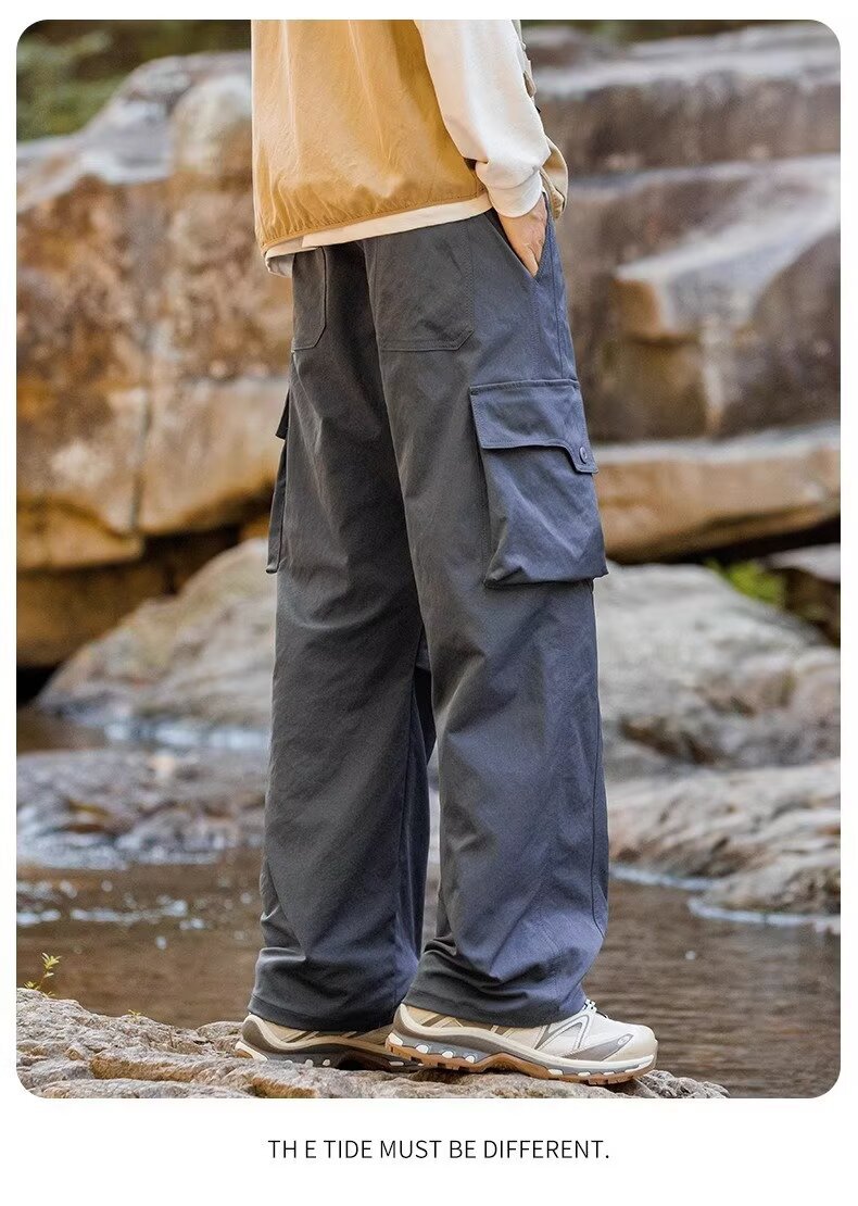 2025 봄, 가을 신작 남성 작업복 루즈 스트레이트 팬츠 아메리칸 스포츠 작업복 남성용 캐주얼 바지