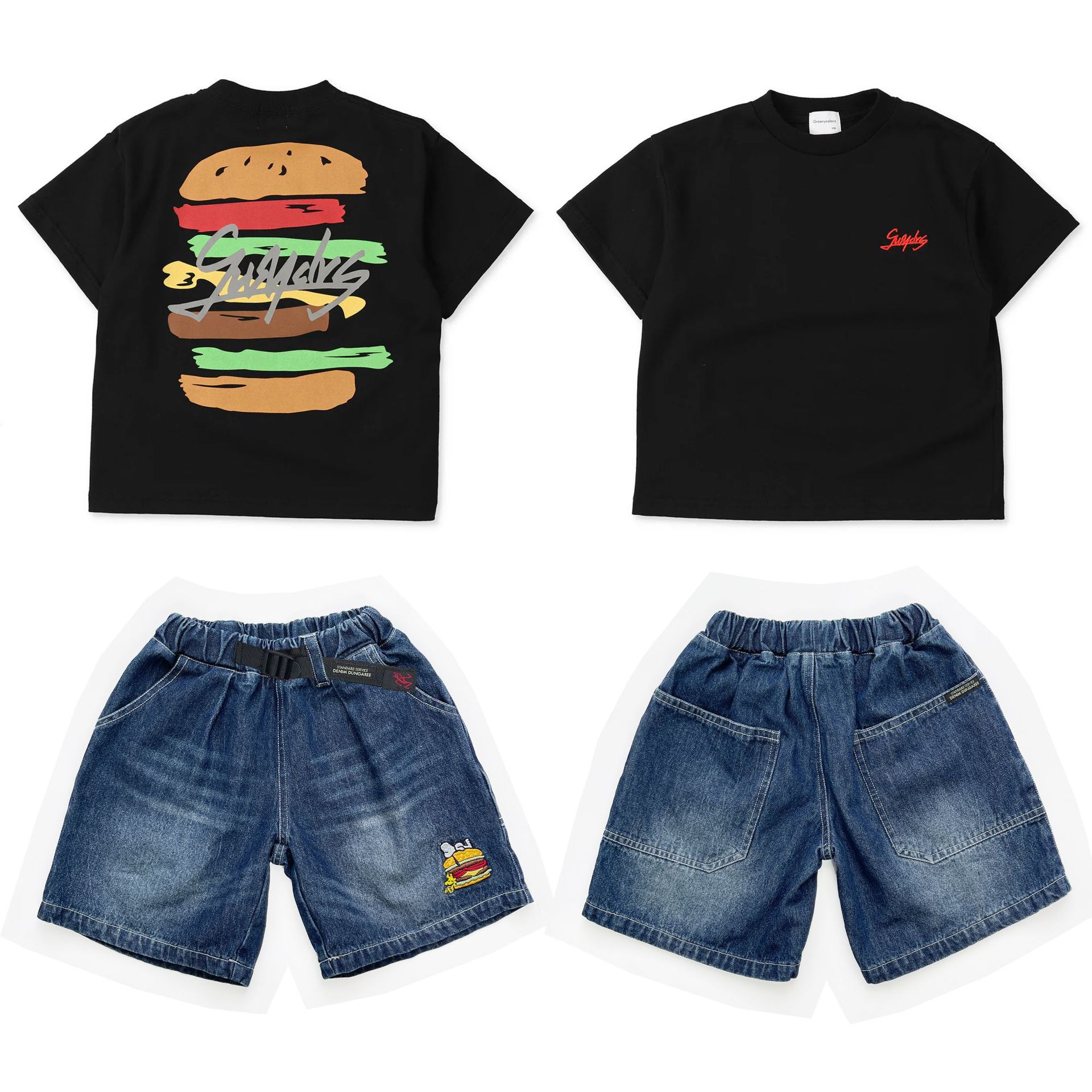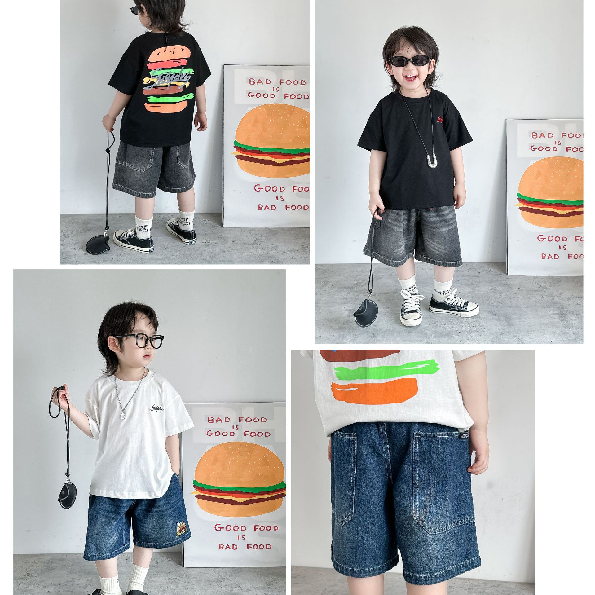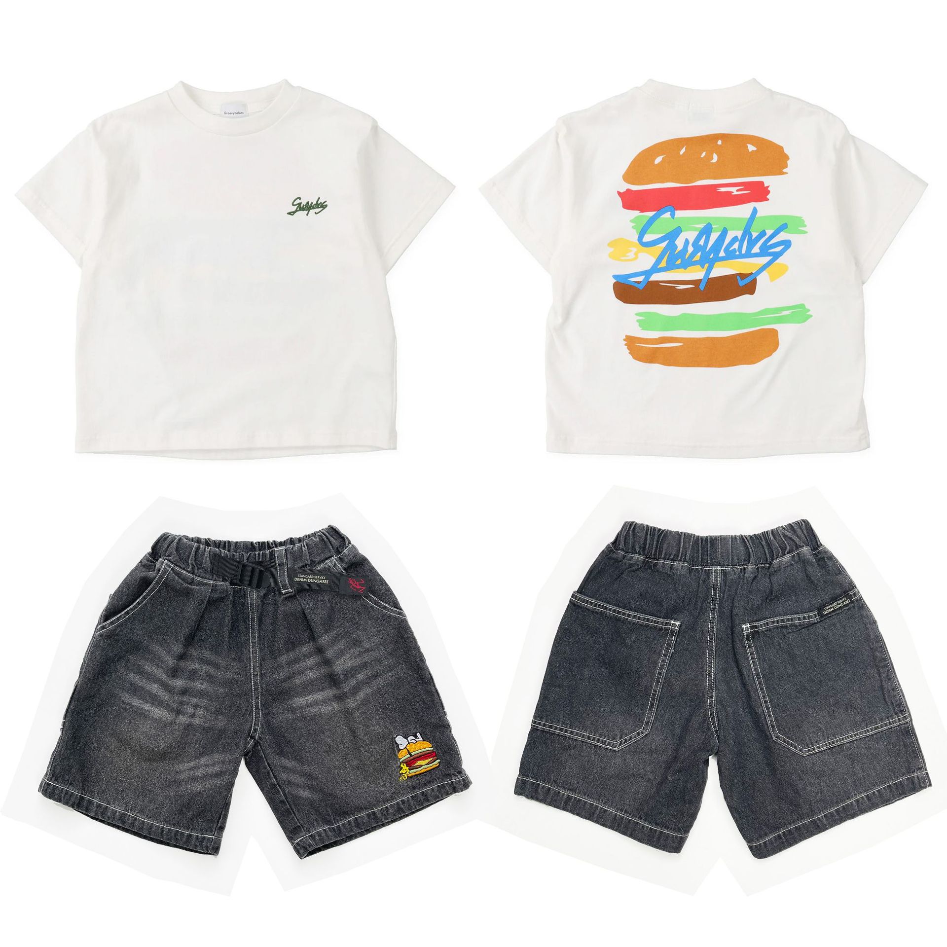 夏季搭配同系列汉堡潮T、史努比亮色T恤,